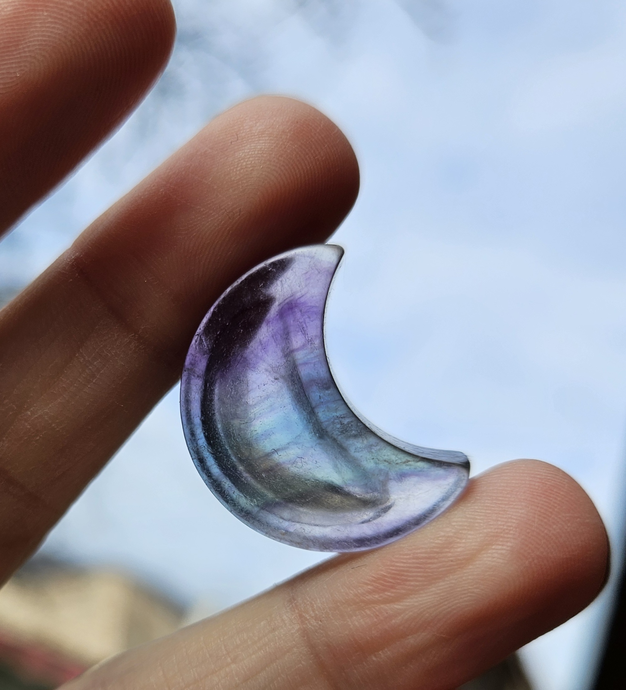 Mini mištička z Fluoritu v tvare mesiaca. Rozmer cca 2,7 x 2 cm