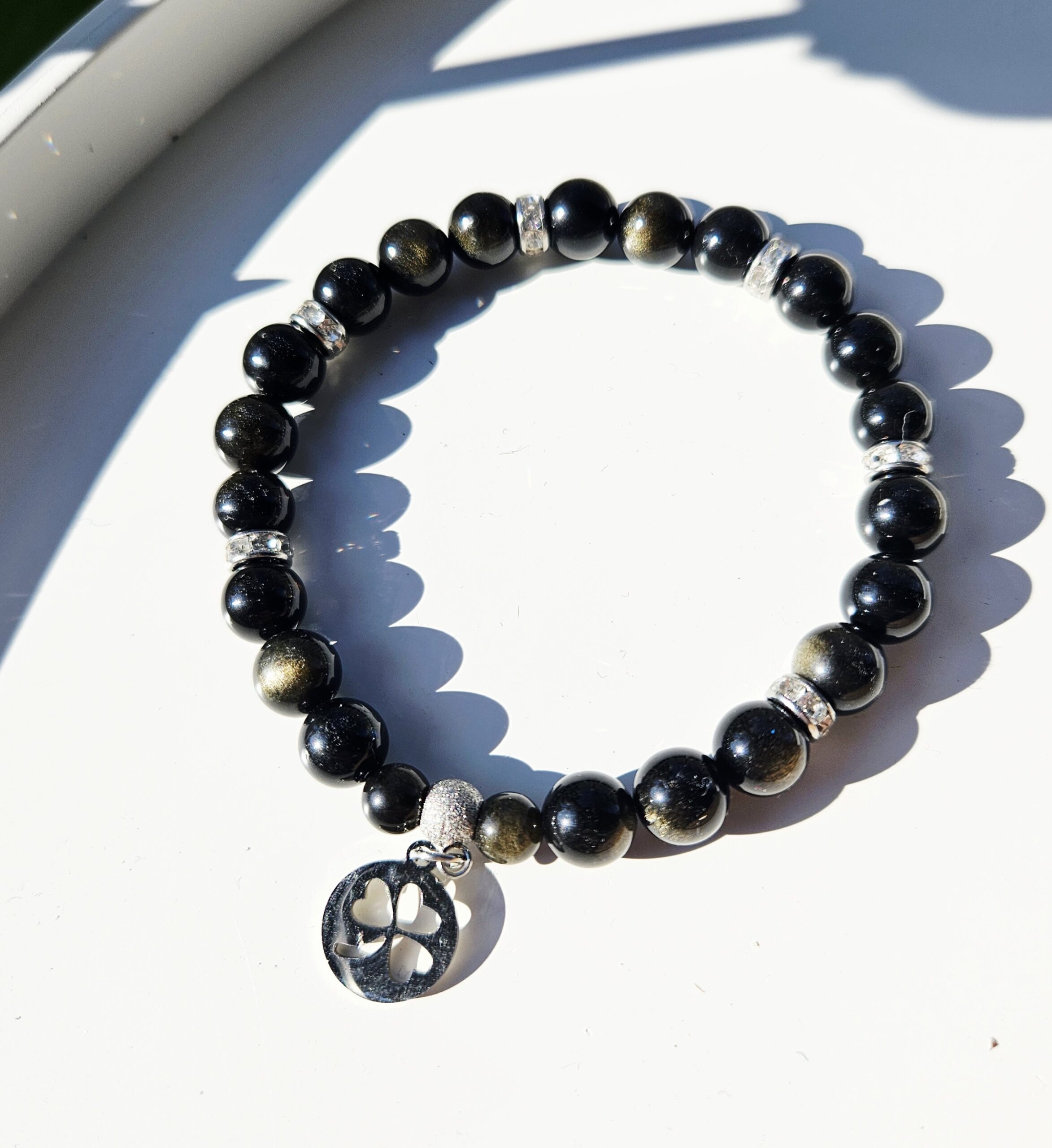Náramok zo zlatého obsidiánu s príveskom trojlístka
