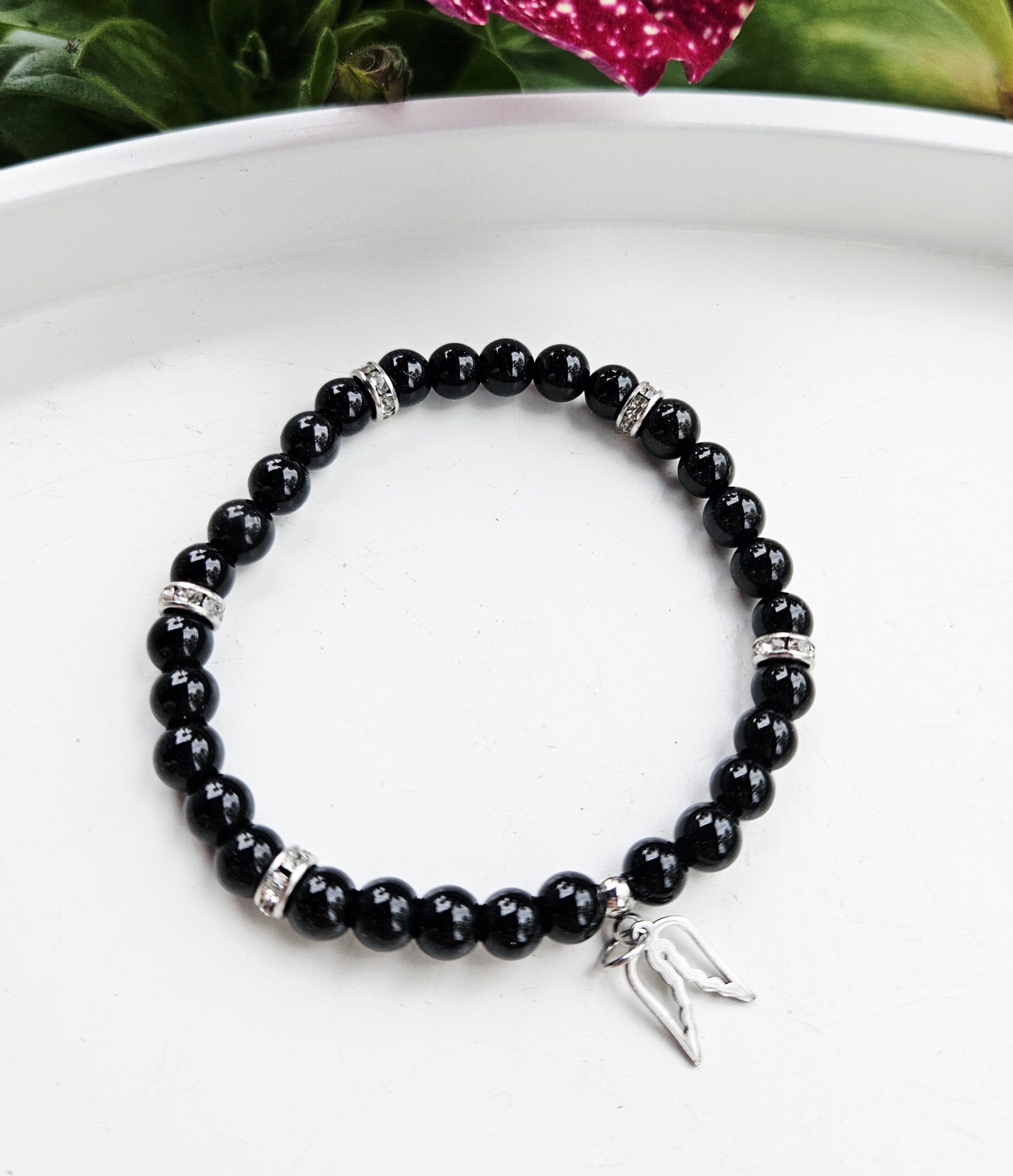 Ónyx čierny lesklý náramok 6mm ANJELSKÉ KRÍDLA