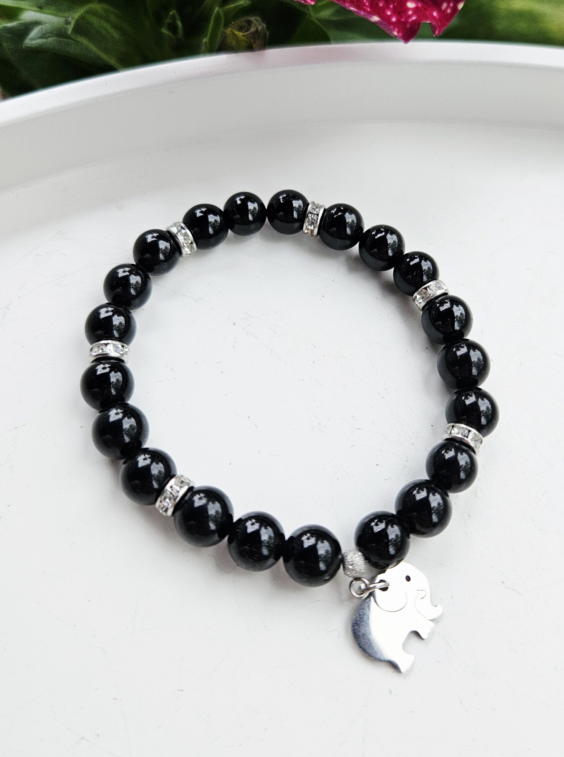 Ónyx čierny lesklý náramok 8mm SLONÍK