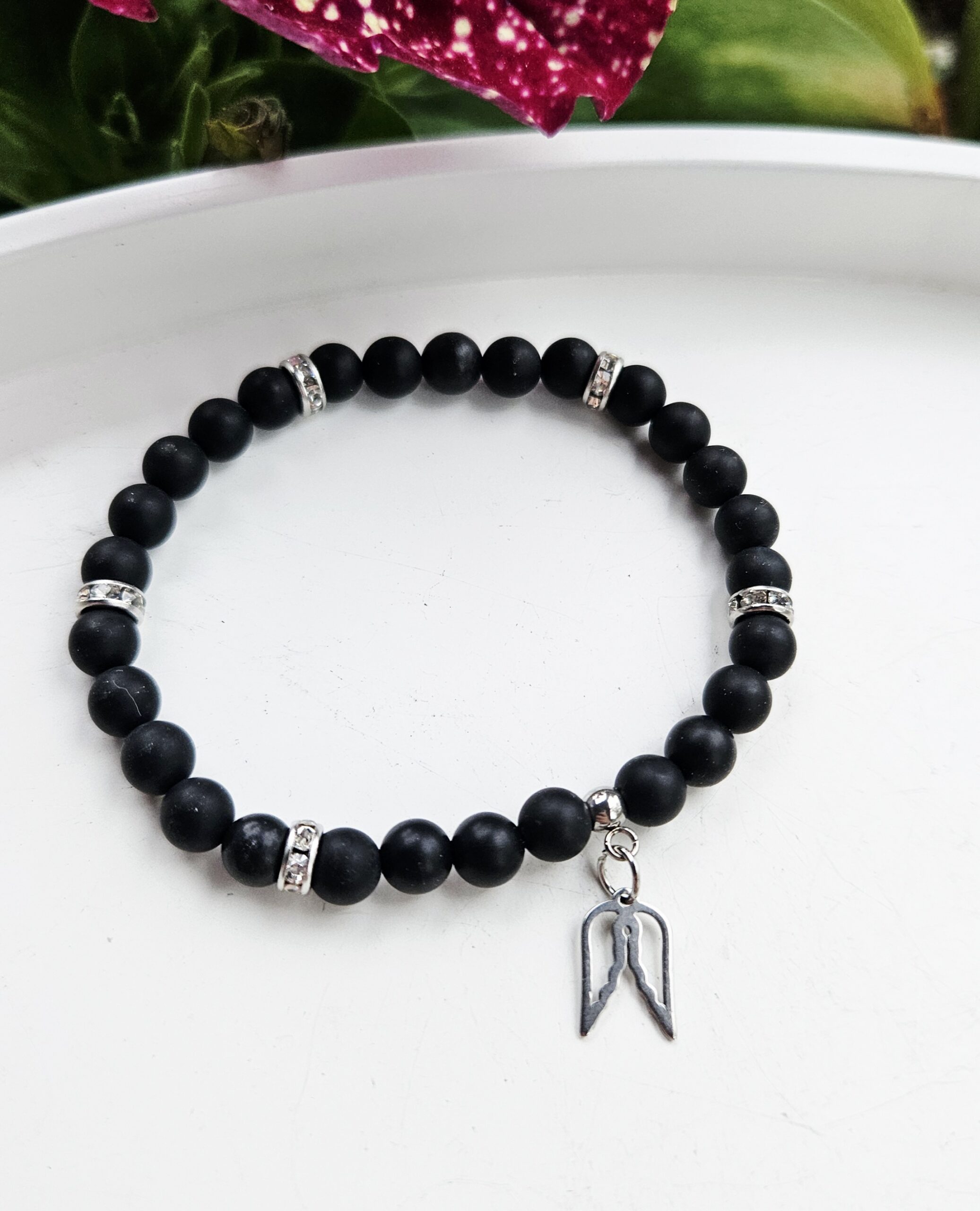 Ónyx čierny matný náramok 6mm ANJELSKÉ KRÍDLA