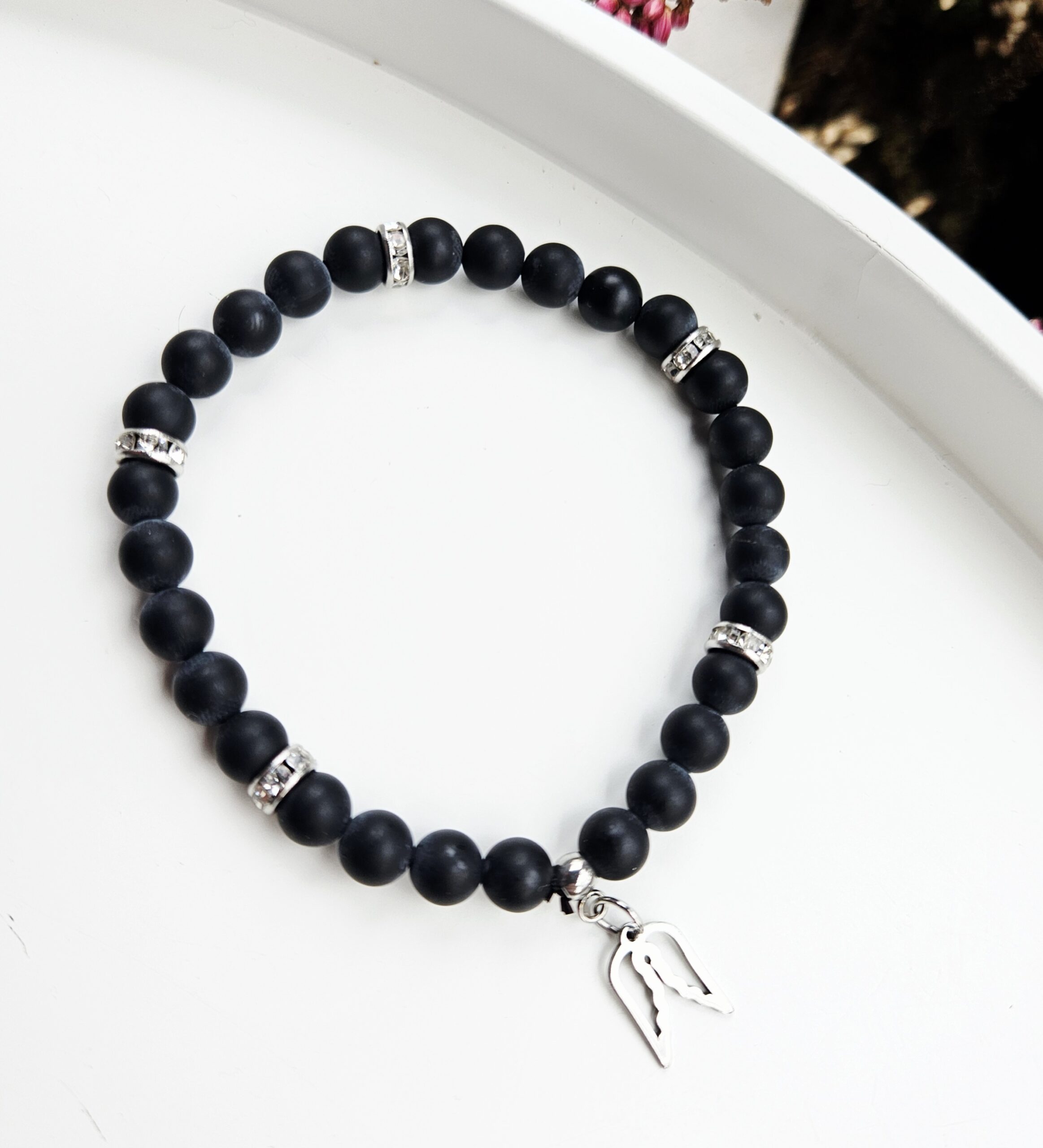 Ónyx čierny matný náramok 6mm Anjelské krídla