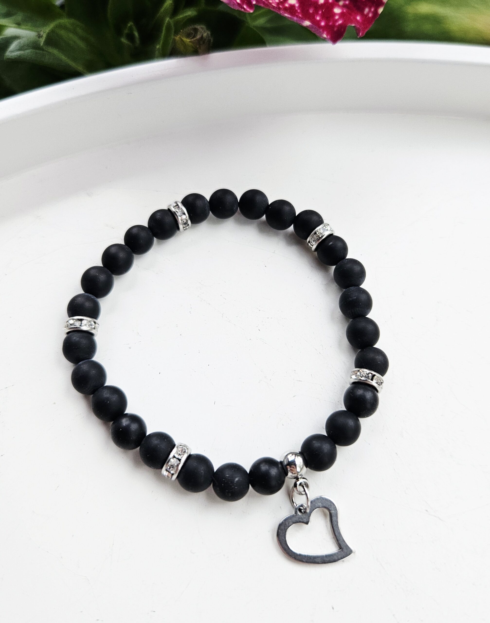 Ónyx čierny matný náramok 6mm SRDIEČKO
