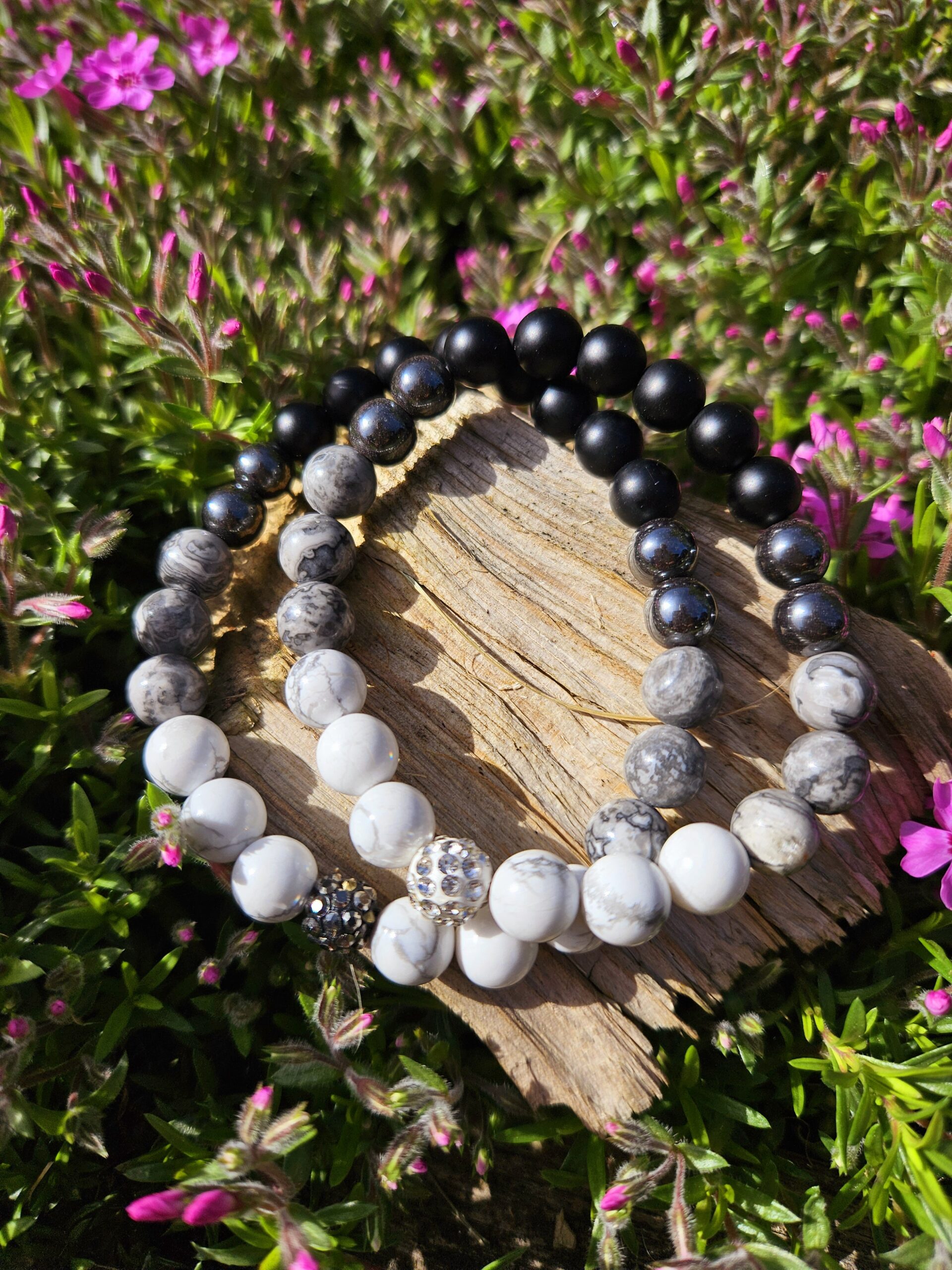 Partnerské náramky Magnezit+Jaspis+Hematit+Ónyx