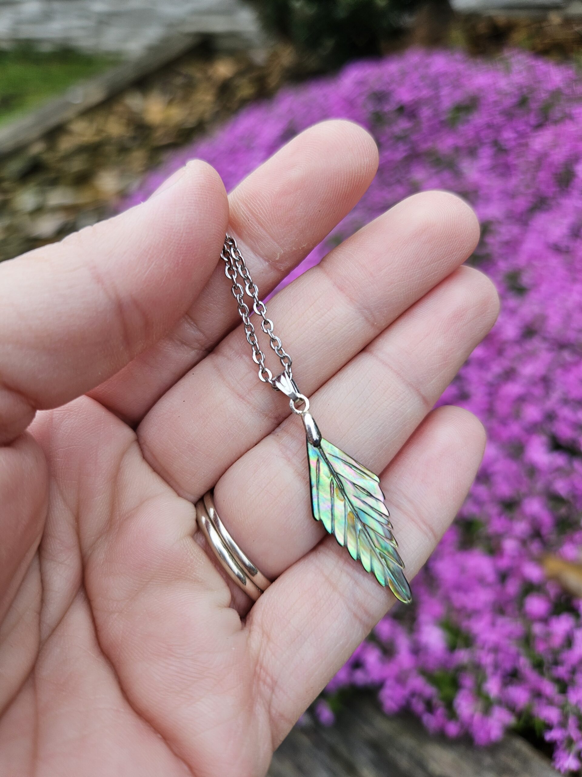 Mušľa Paua Abalone - nie je kameň, ale ide o ulitu istého typu mäkkýša (Haliotis Iris). Po vyleštení hrá farbami dúhy To je zapríčinené lámaním odrazeného svetla