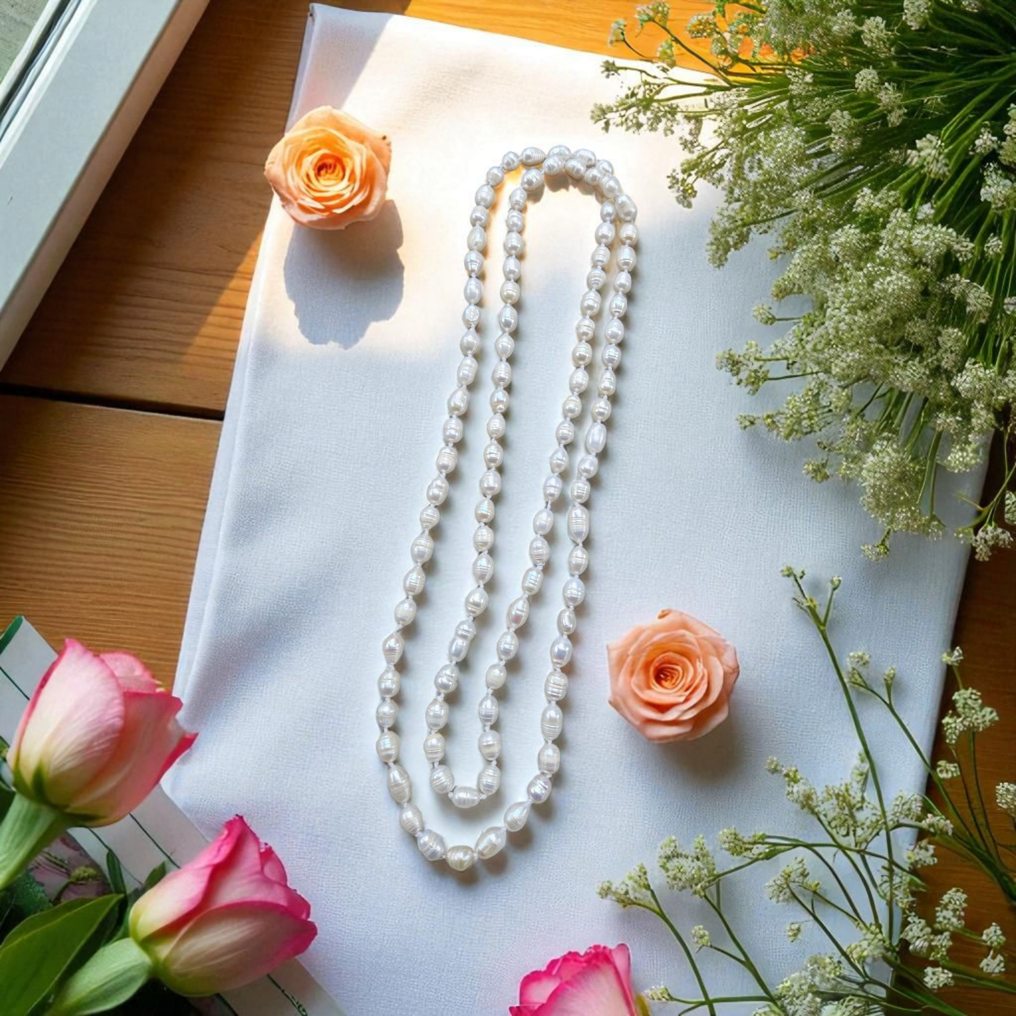 Perly riečne biele náhrdelník 120cm