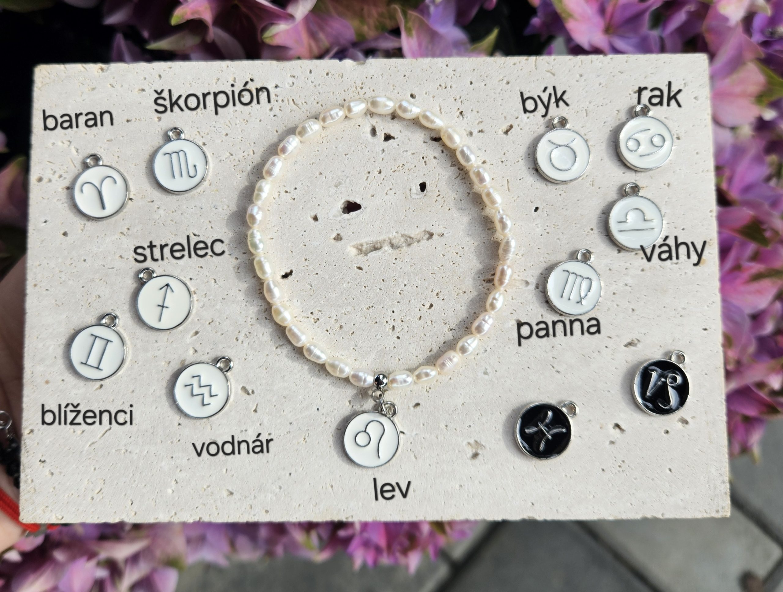 Perly riečne biele -náramok so znamením zverokruhu