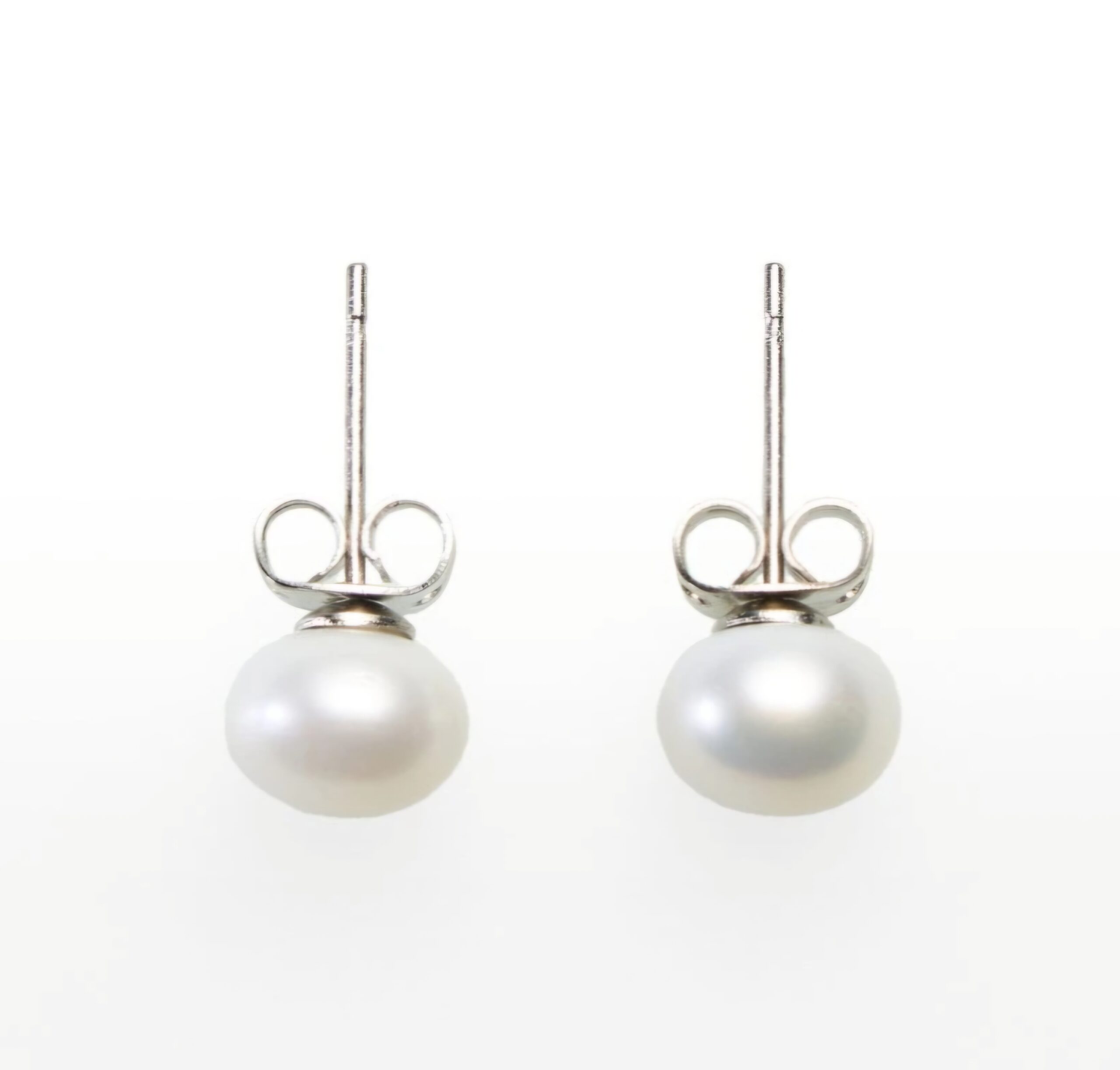 Perly riečne biele – náušnice napichovacie 8mm chir.oceľ
