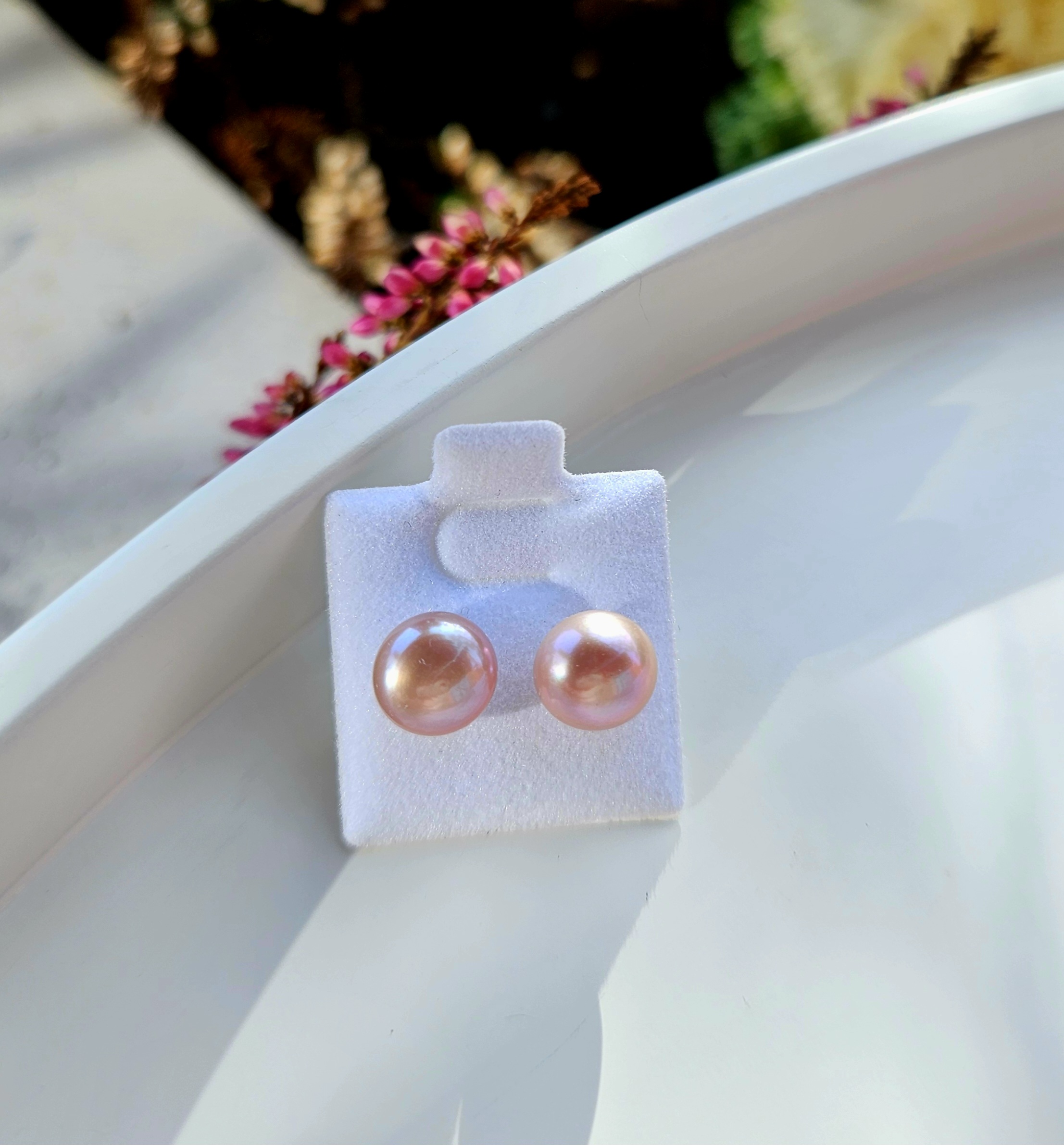 Perly riečne fialové – náušnice napichovacie 8mm chir.oceľ