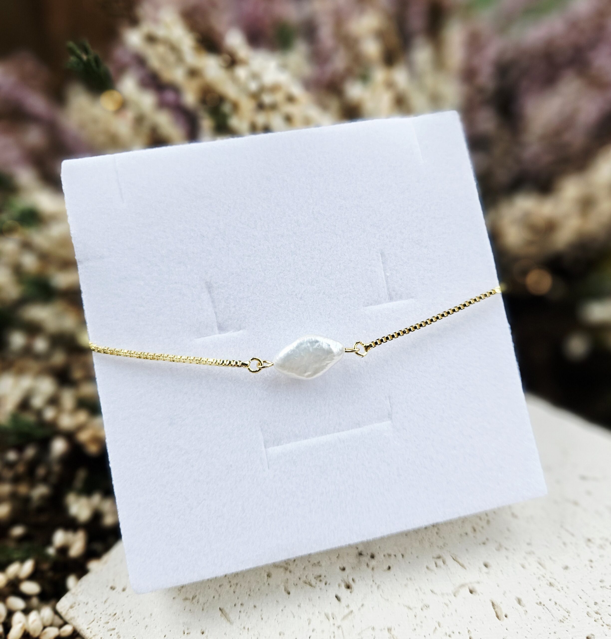 Náramok je na zlatej retiazke z chir.ocele, ktorú si viete roztiahnuť a stiahnuť čiže sa prispôsobí každému zápästiu.