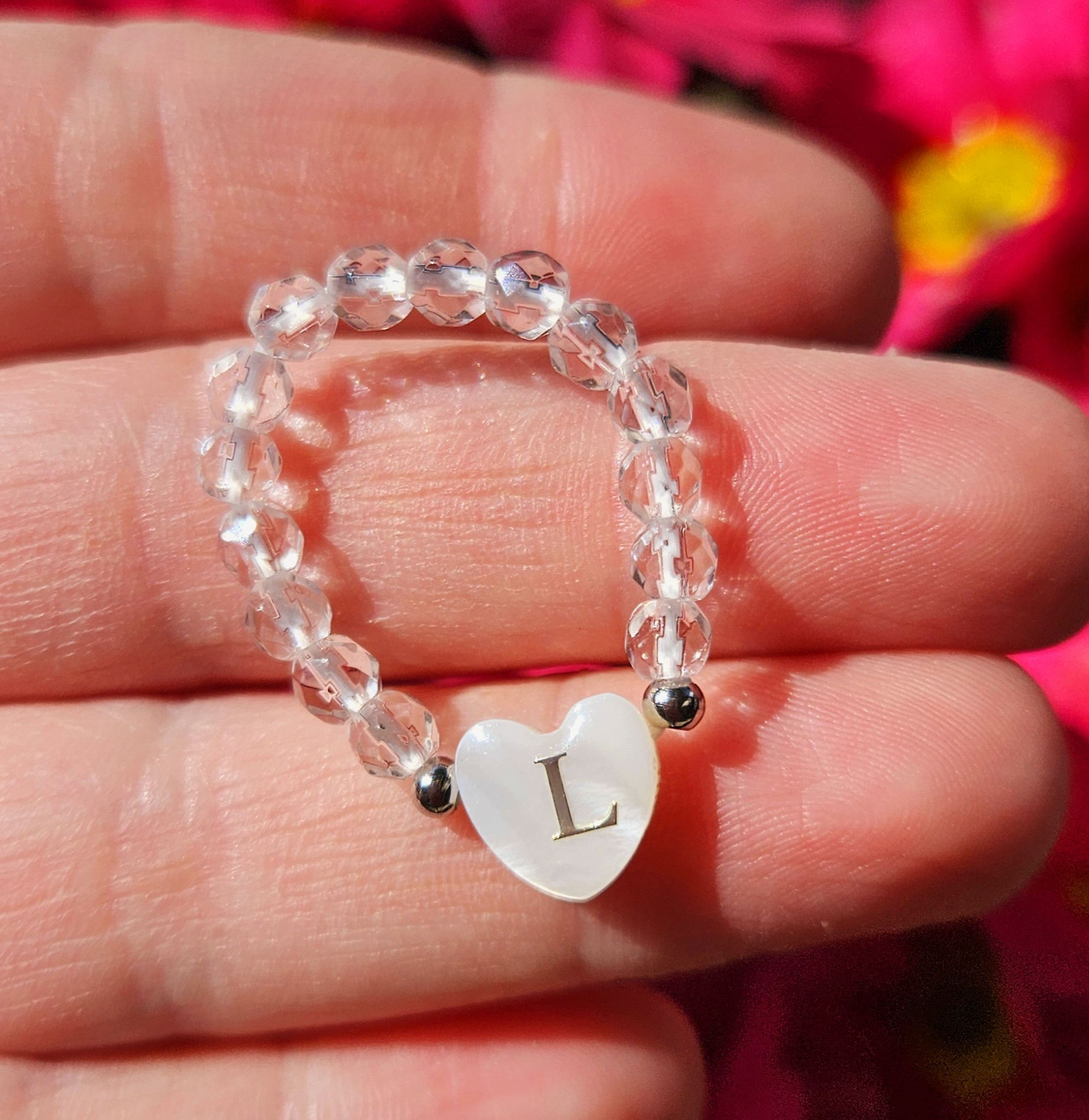 Prsteň na gumičke z KRIŠTÁĽU s písmenom.