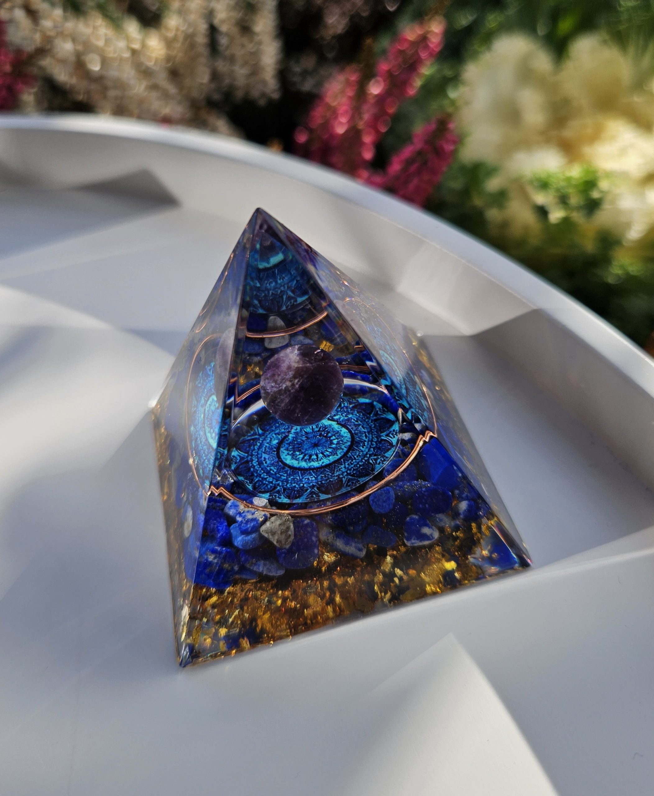 Pyramída Orgonit Lapis lazuli a Ametyst