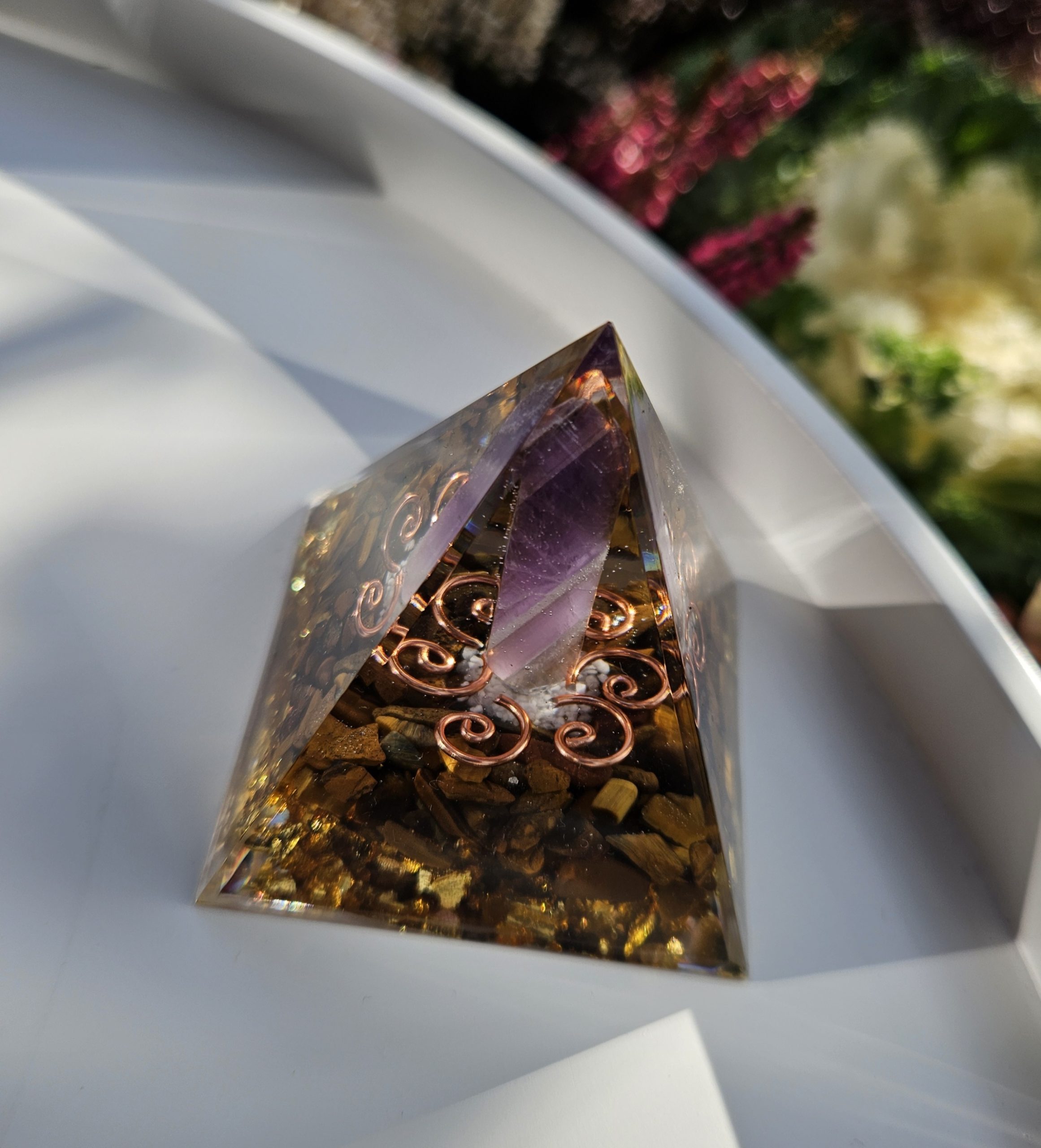 Pyramída Orgonit Tigrie oko a Ametyst