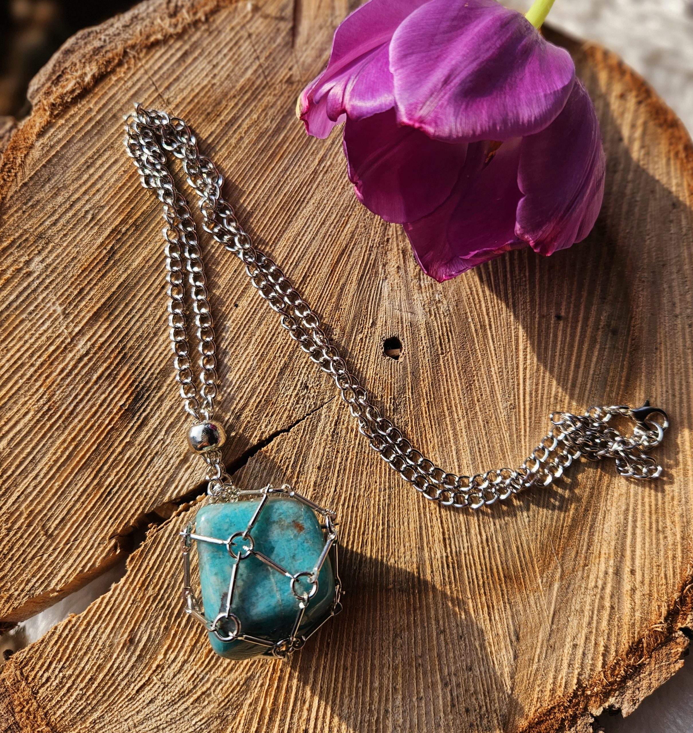 Retiazka z chirurgickej ocele strieborná s kamienkom Amazonit.