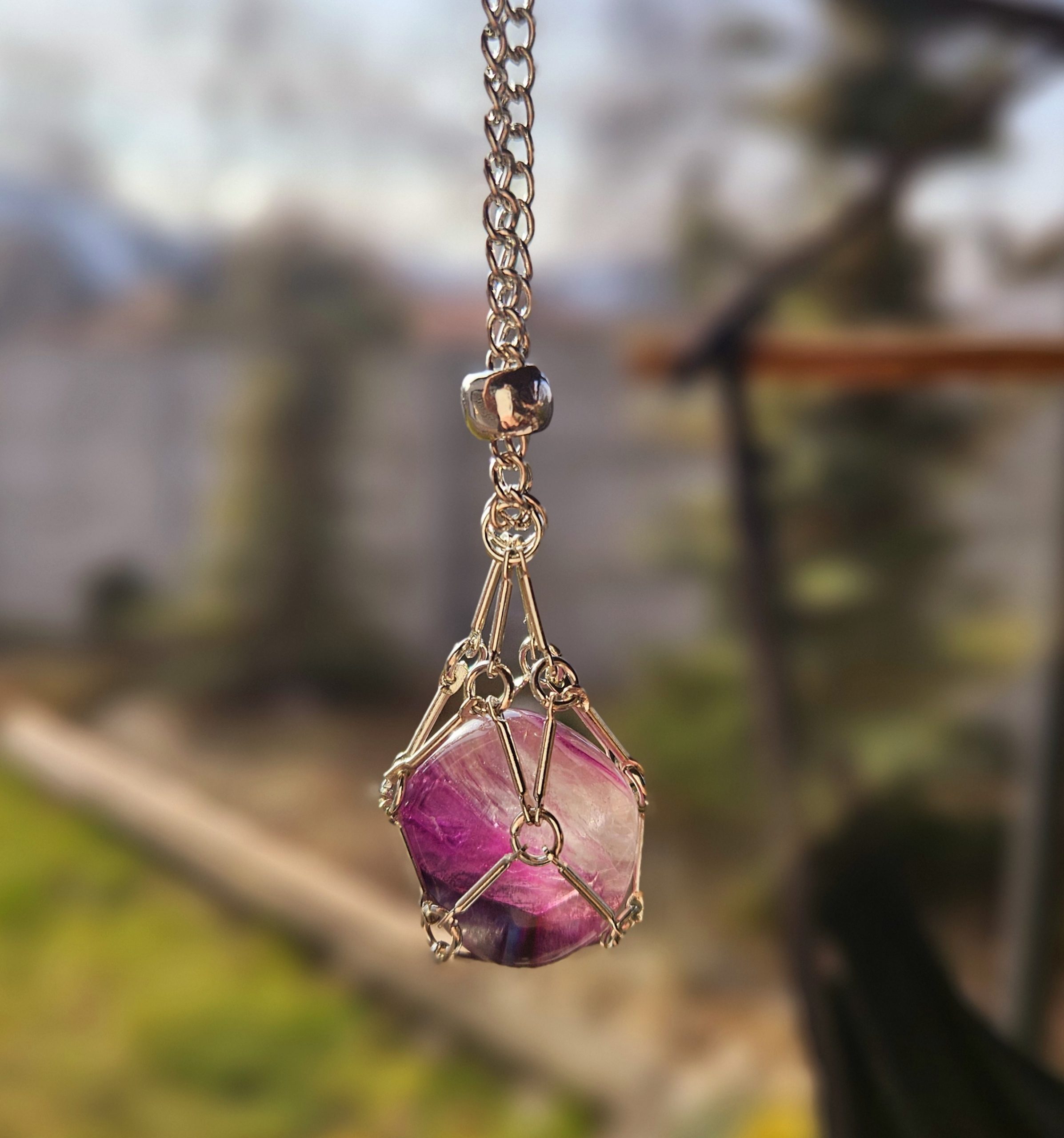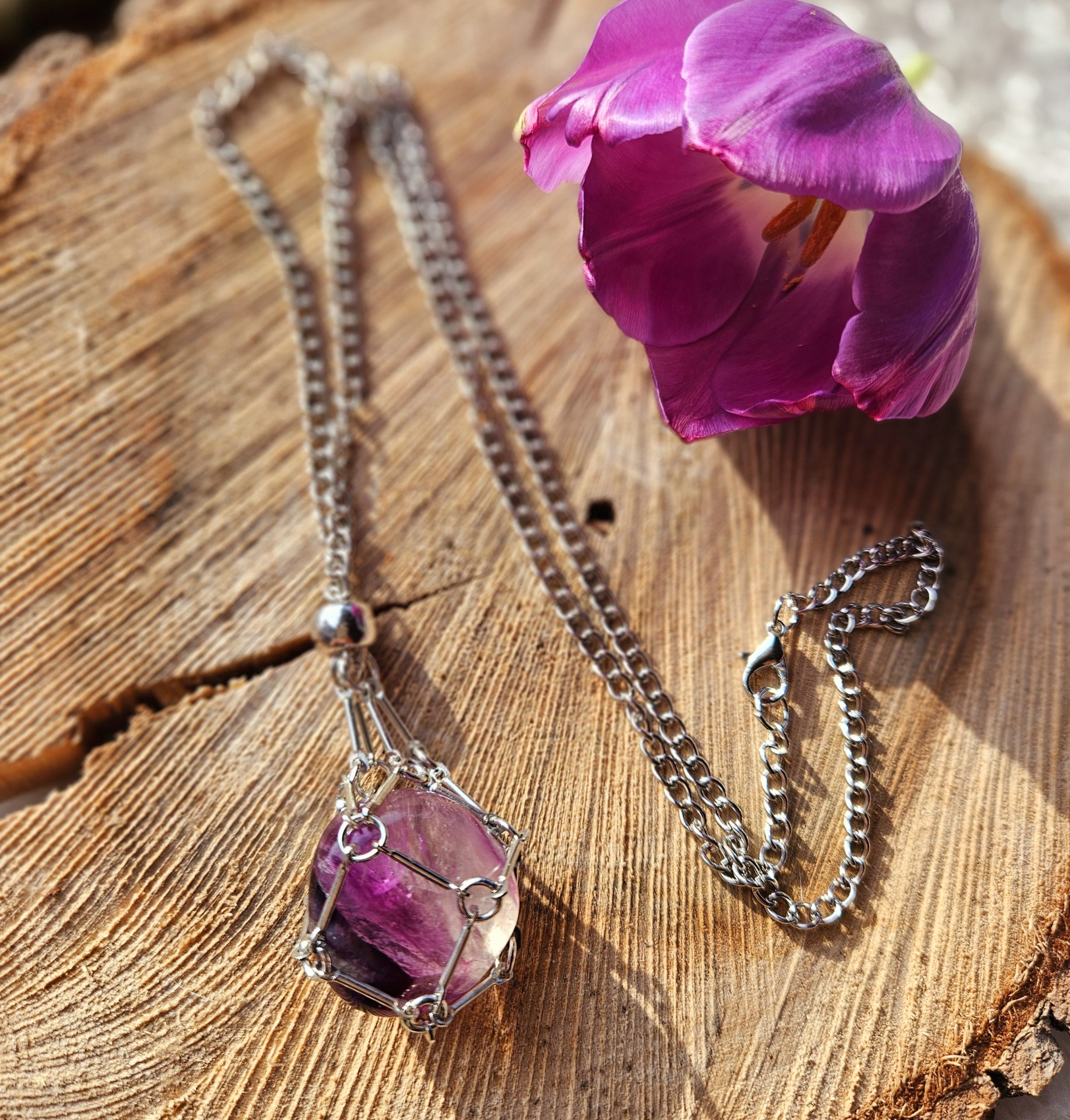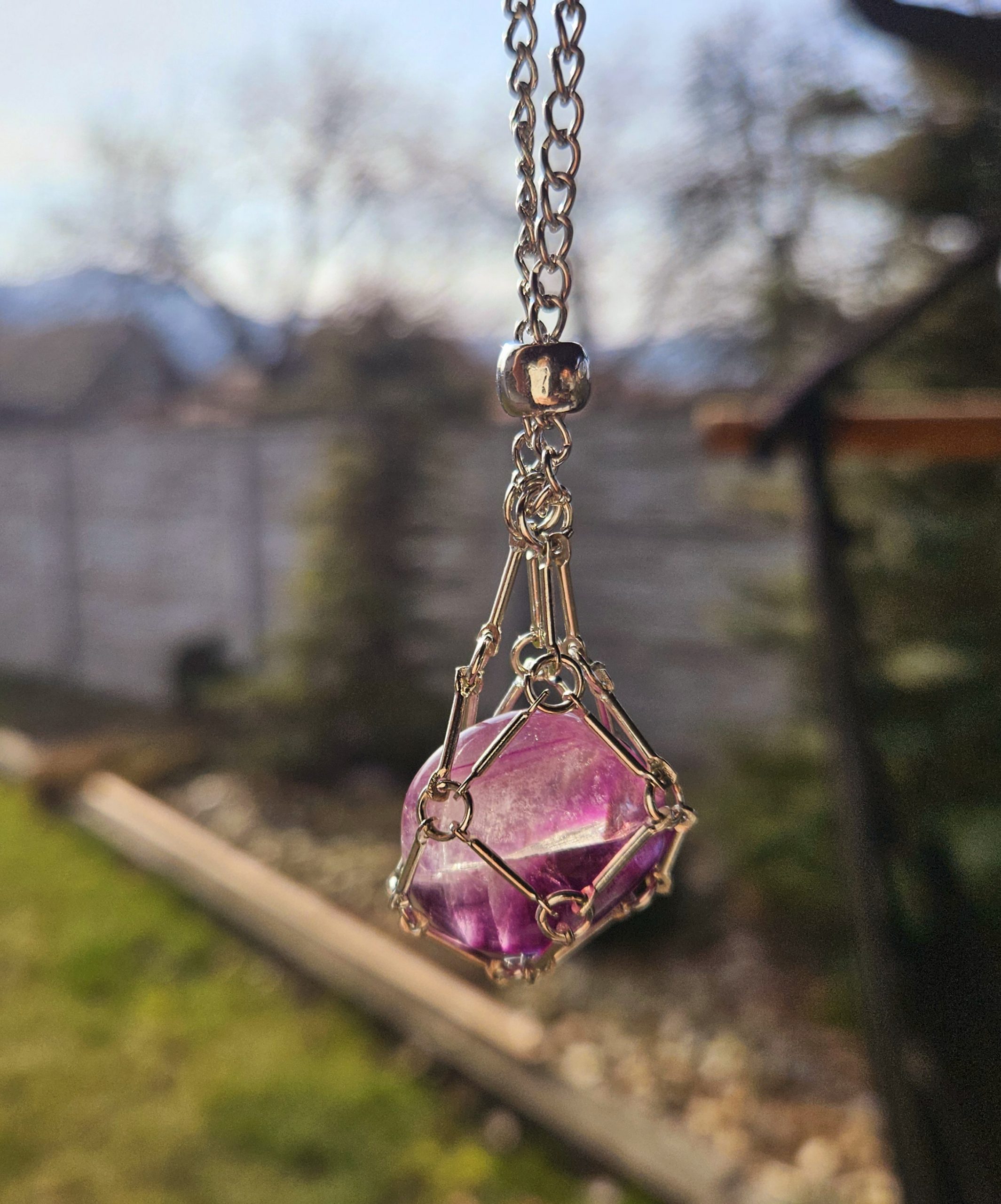 Retiazka z chirurgickej ocele strieborná s kamienkom Fluorit.