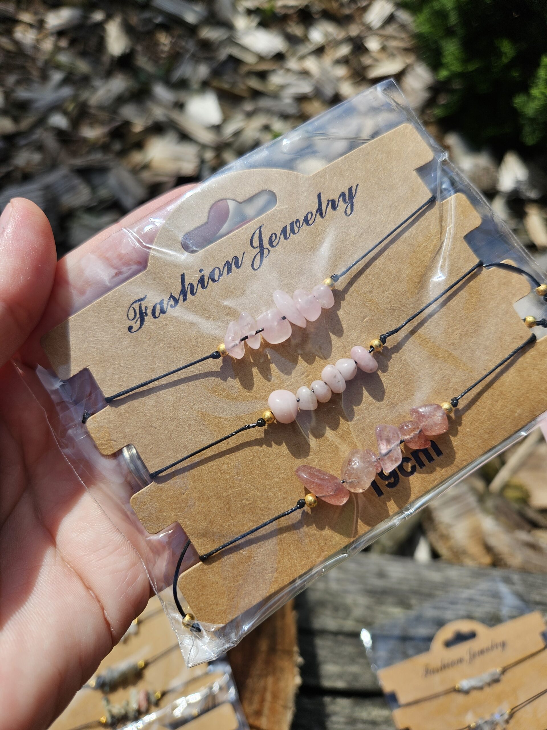 Sada 3 náramkov z lámaných minerálov na zaťahovanie takže sadne na každú veľkosť ruky
