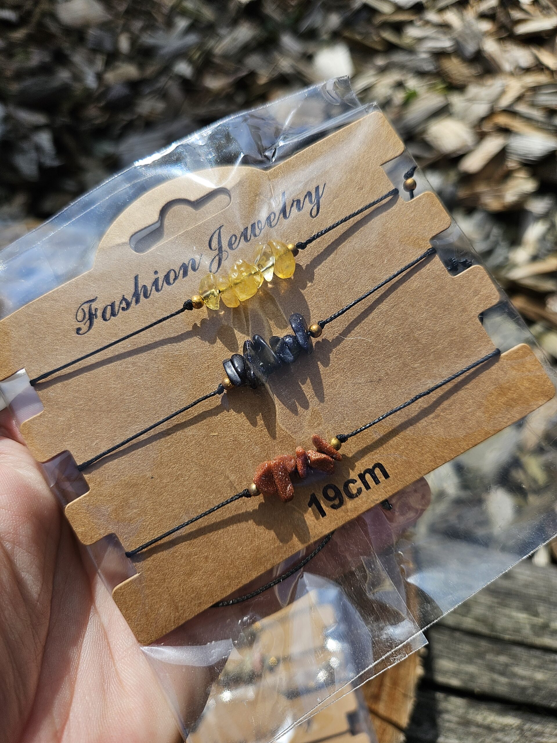 Sada 3 náramkov z lámaných minerálov na zaťahovanie takže sadne na každú veľkosť ruky