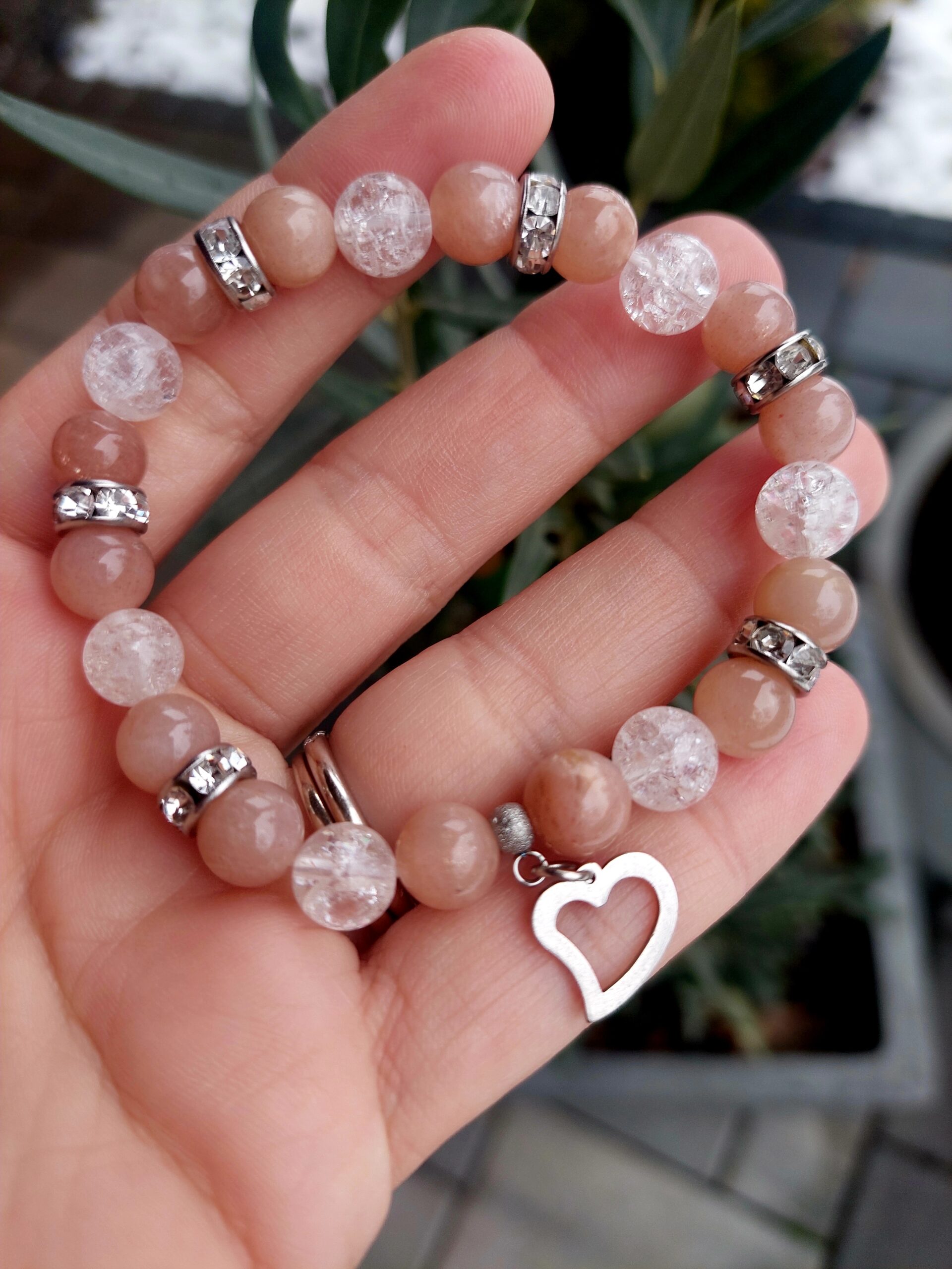 Slnečný kameň + Krištáľ náramok 8mm Srdiečko