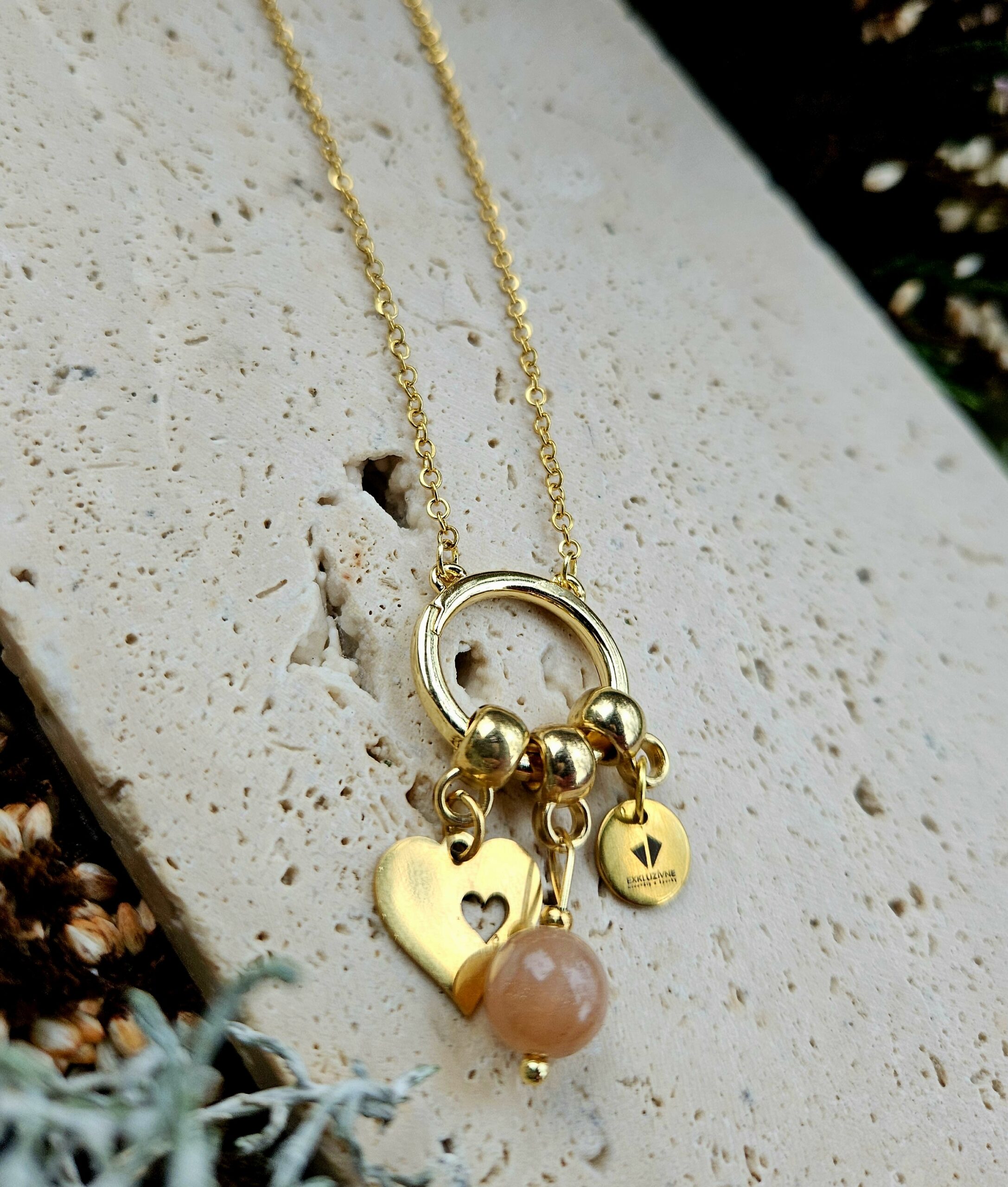 Slnečný kameň náhrdelník na zlatej retiazke z chirurgickej ocele.