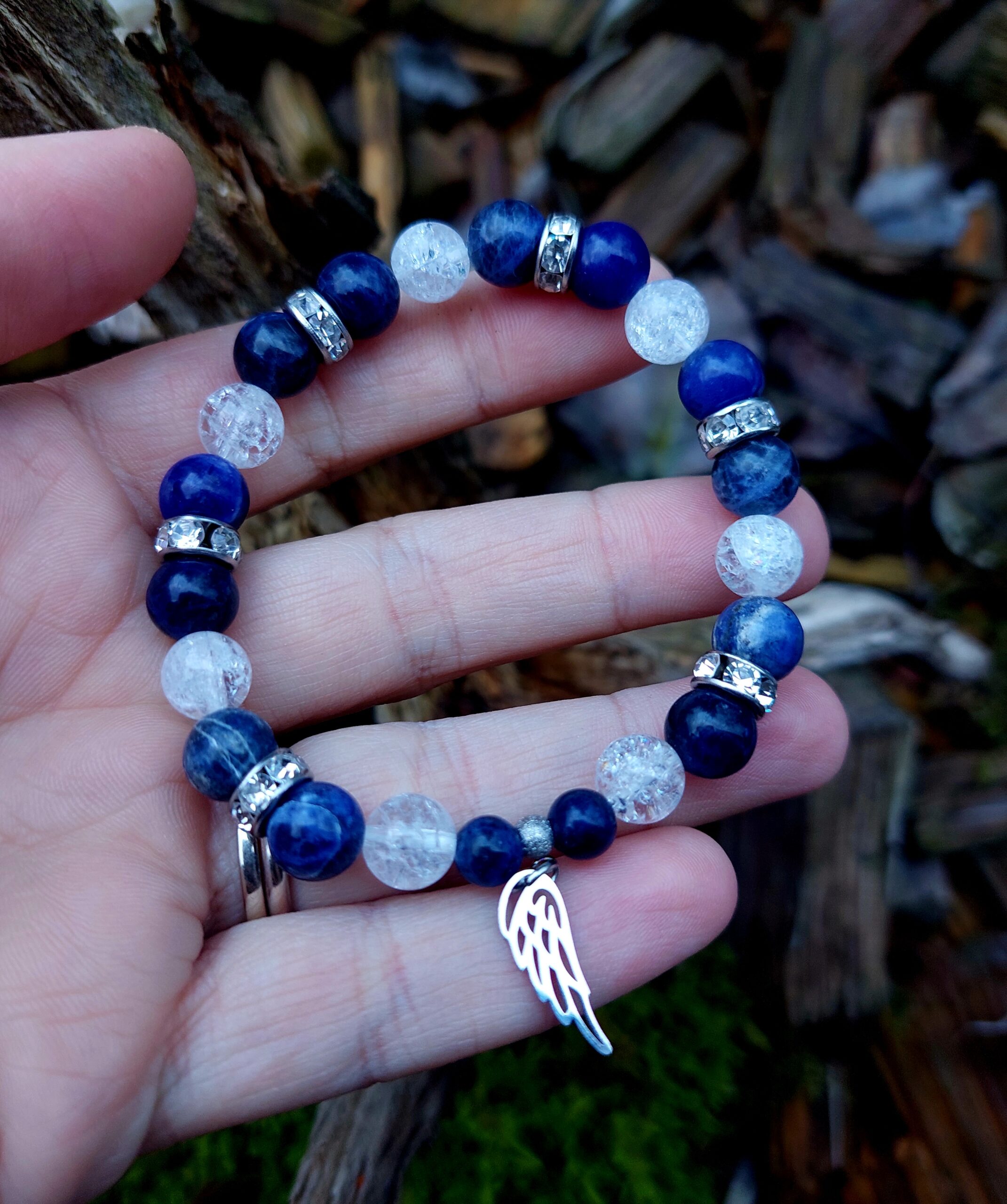 Sodalit + Krištáľ náramok 8mm Anjelske krídlo