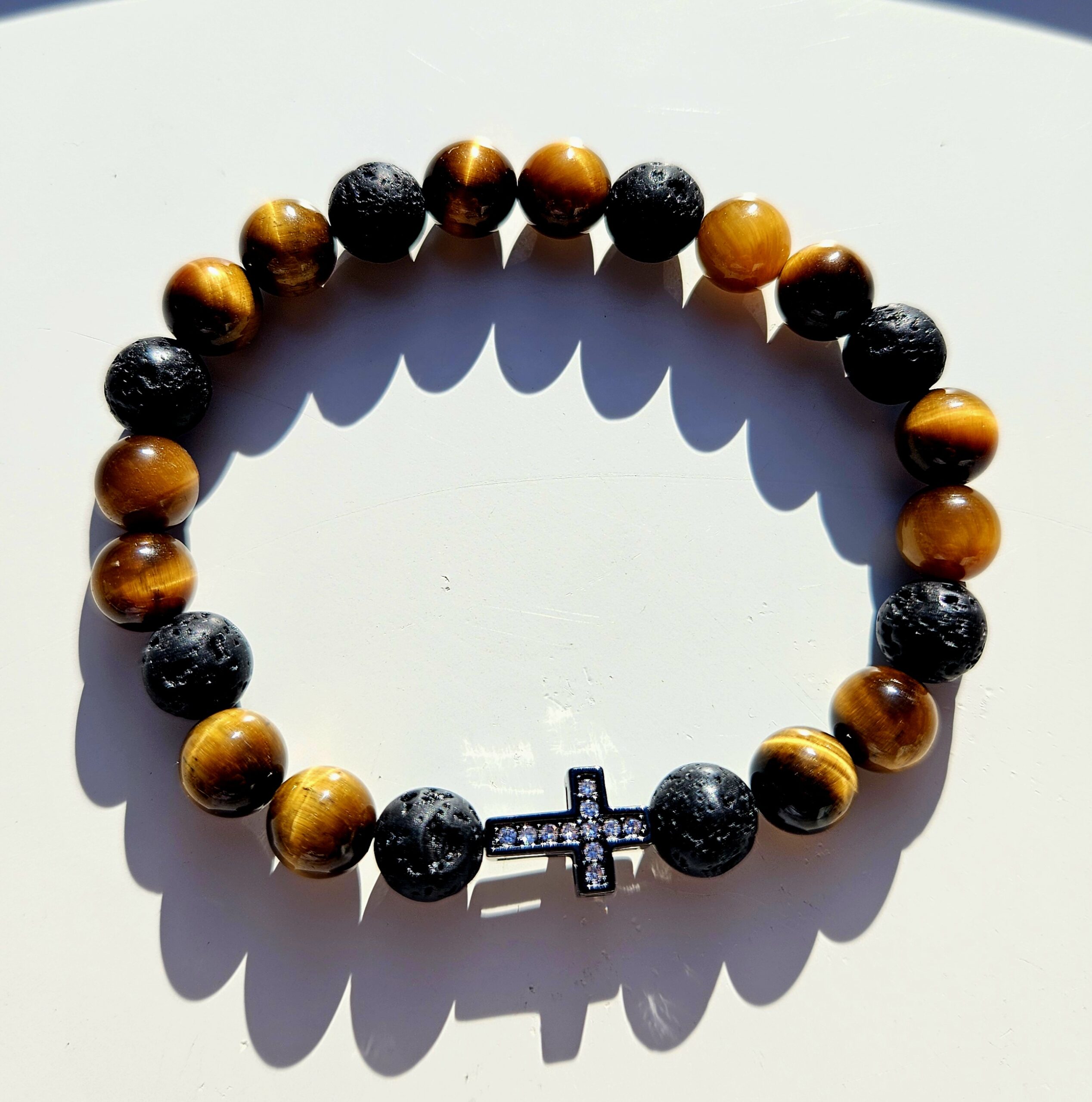 Náramok s krížikom z tigrieho oka a lávy – sila, ochrana a štýl v jednom