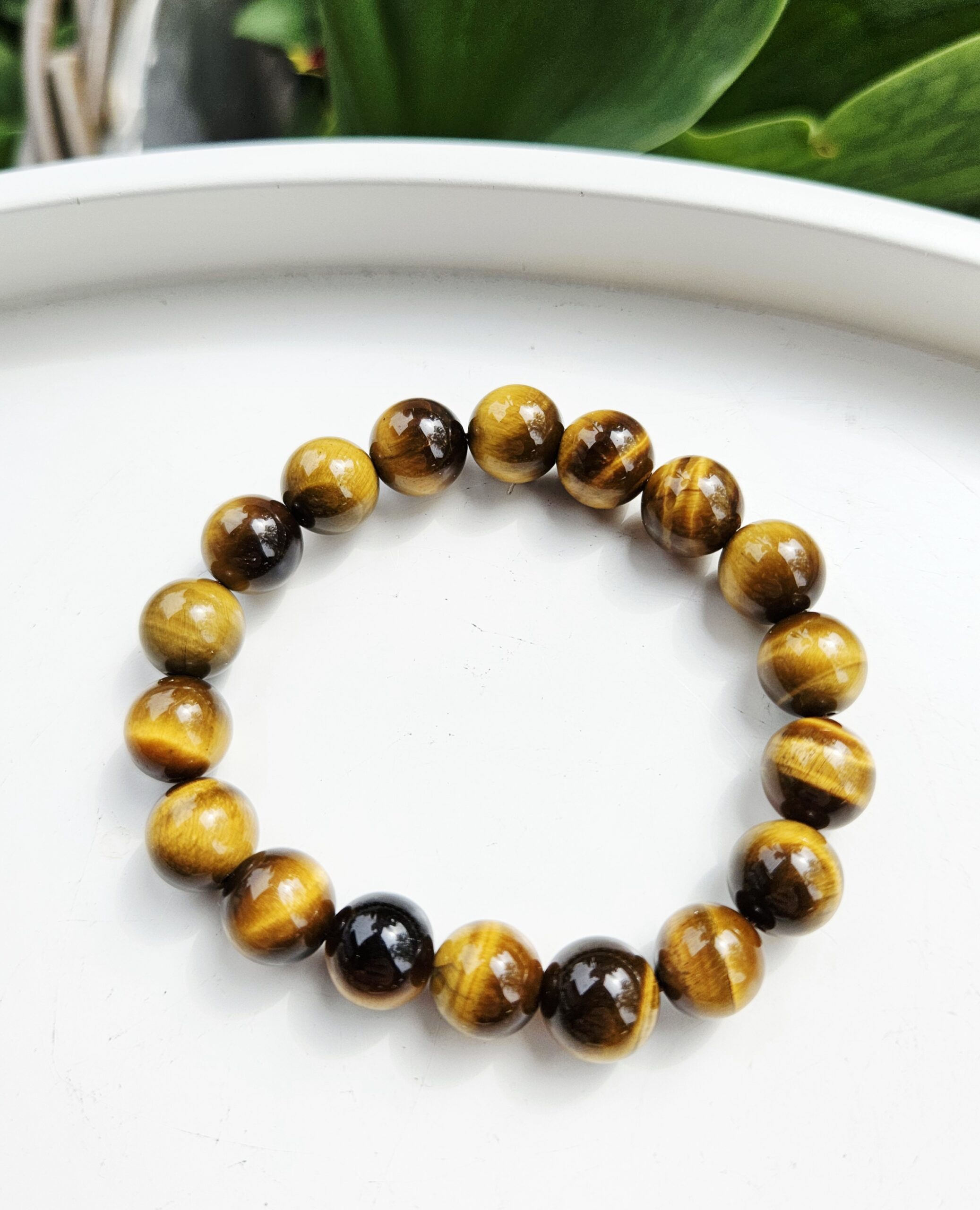 Tento výrazný náramok z tigrieho oka očarí svojím typickým zlatohnedým leskom a fascinujúcim efektom „mačacieho oka“, ktorý sa mení pri dopade svetla.