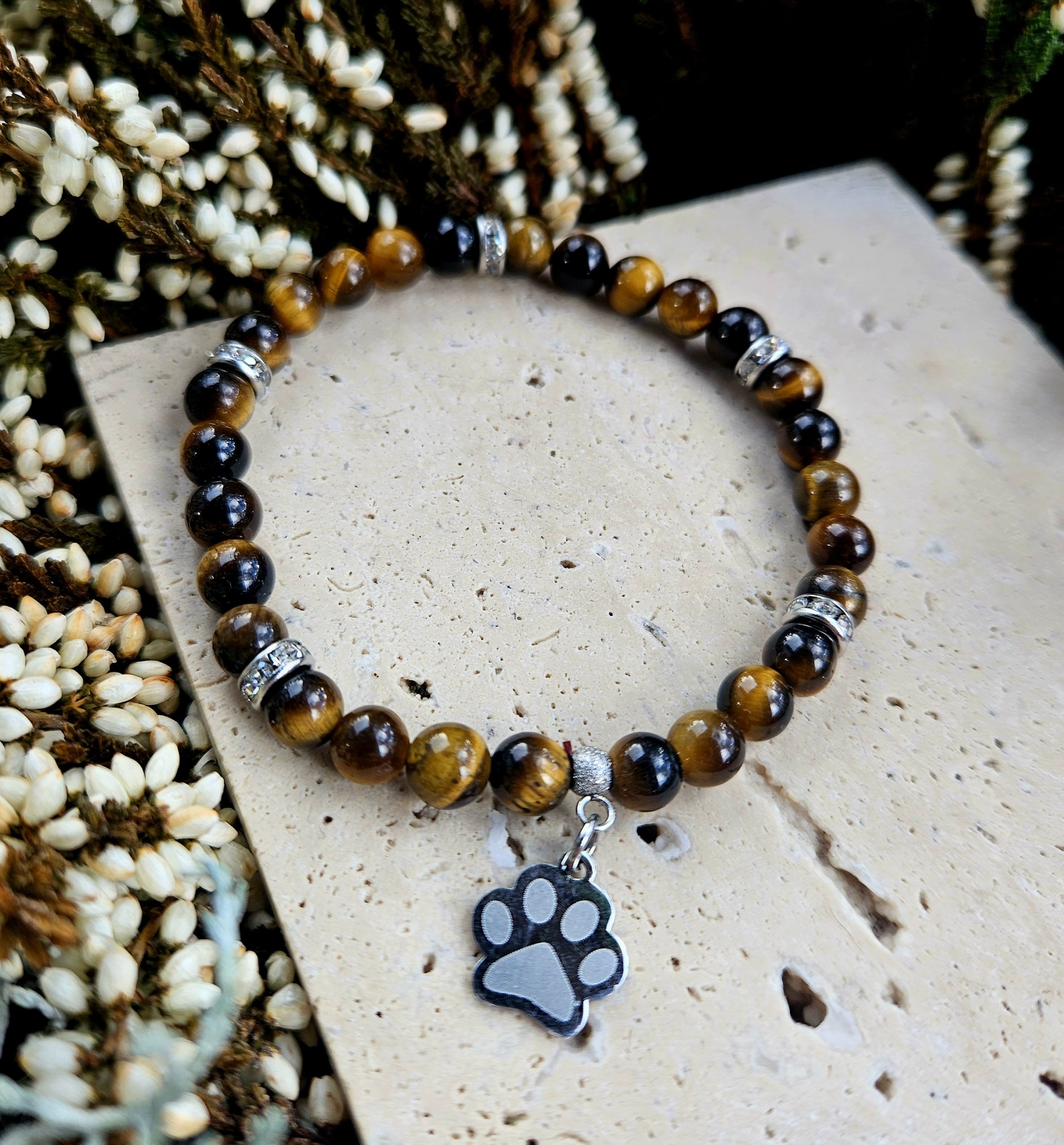 Tigrie oko náramok 6mm LABKA chir.oceľ