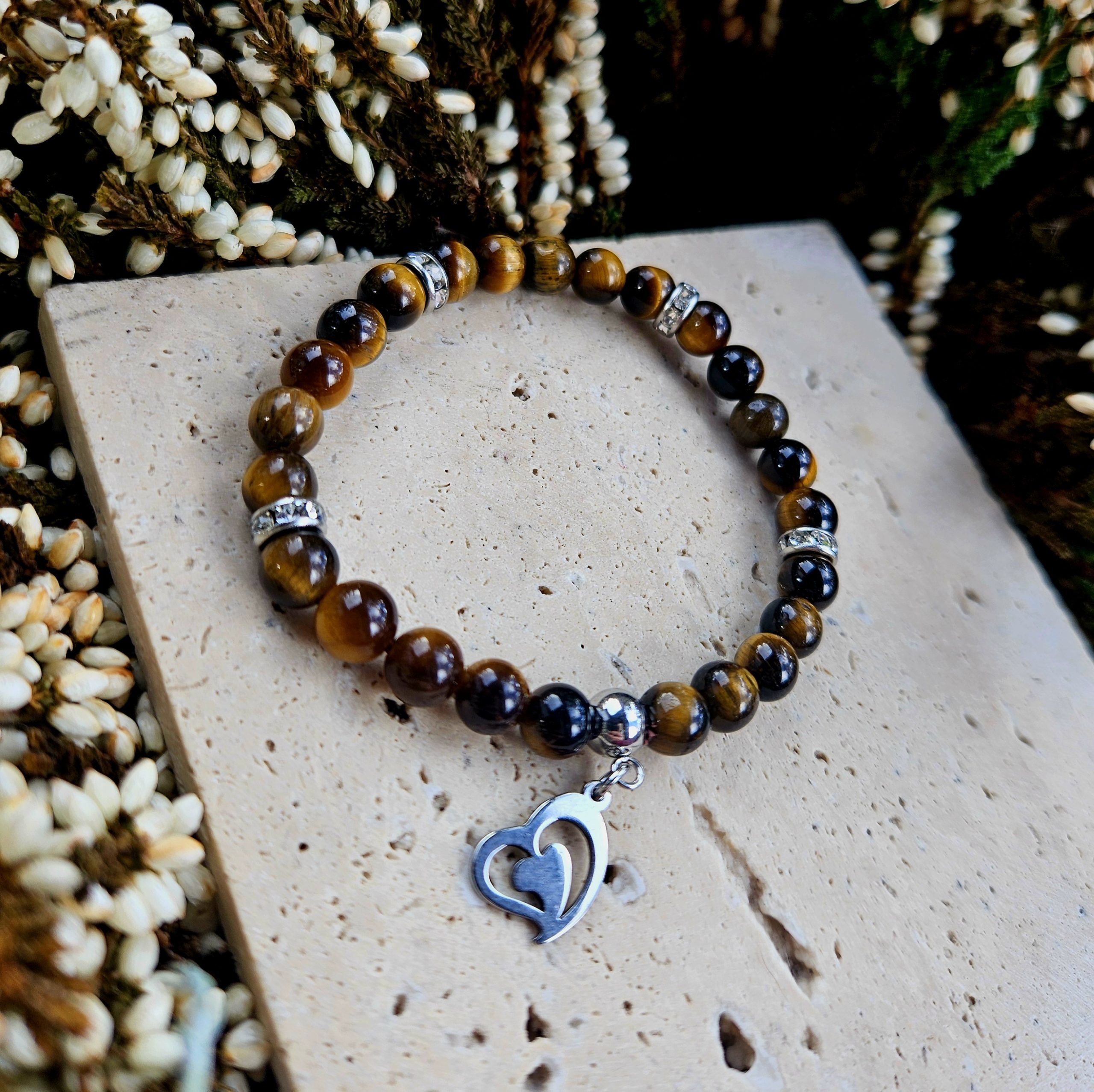 Tigrie oko náramok 6mm SRDIEČKO chir.oceľ