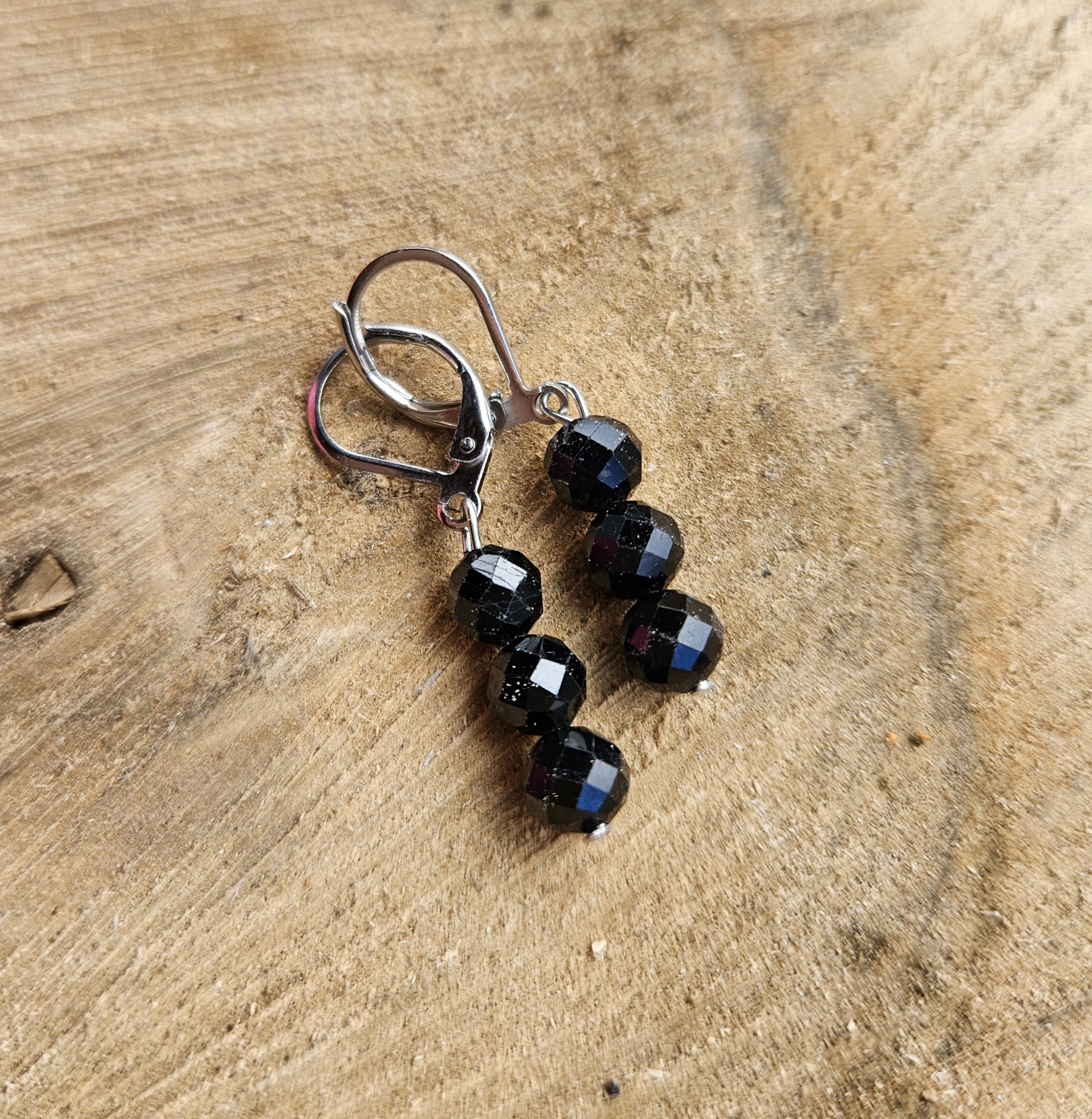 Turmalín čierny náušnice vysiace 6mm fazetované