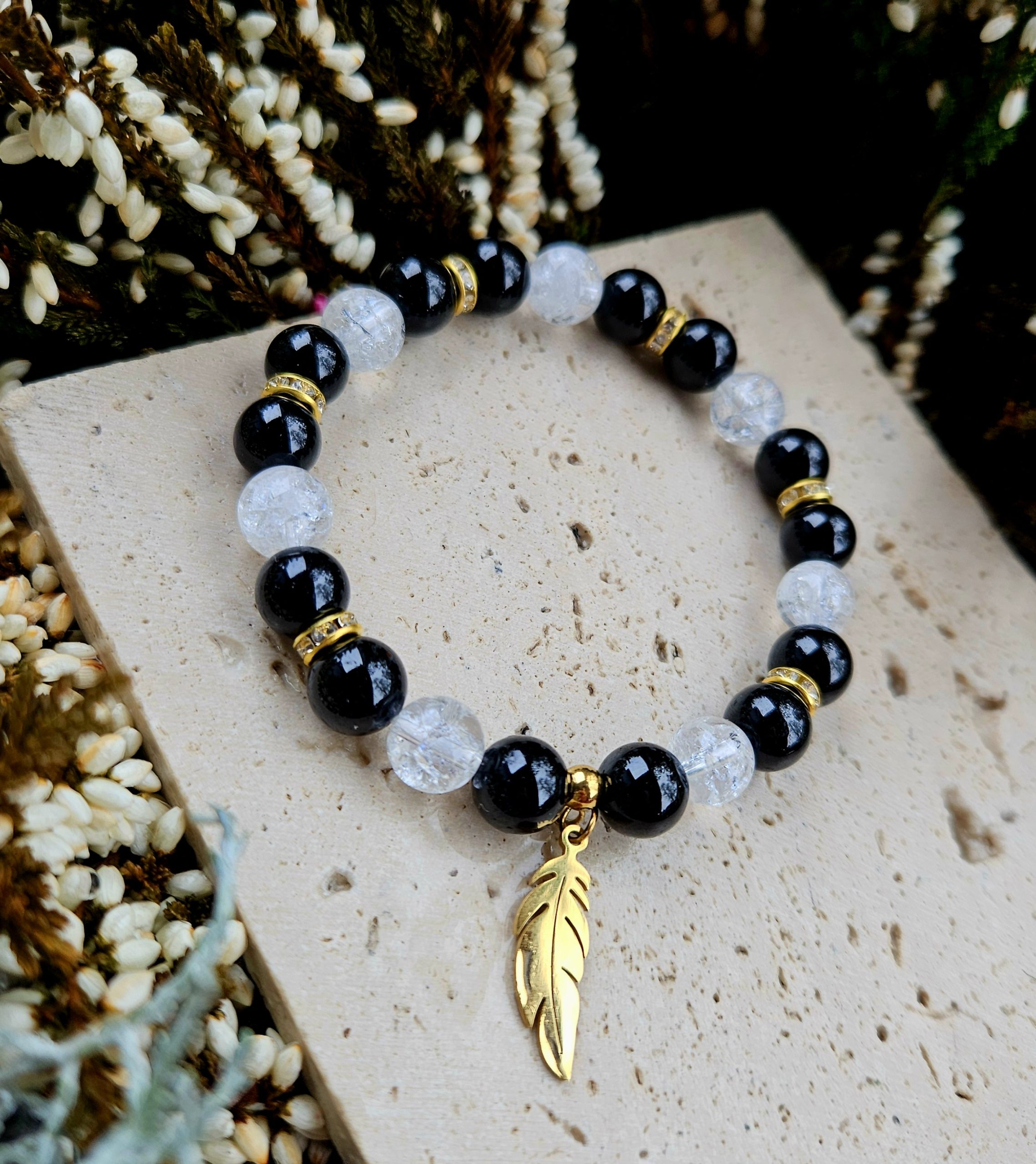 Turmalín čierny + Krištáľ náramok 8mm PIERKO zlaté