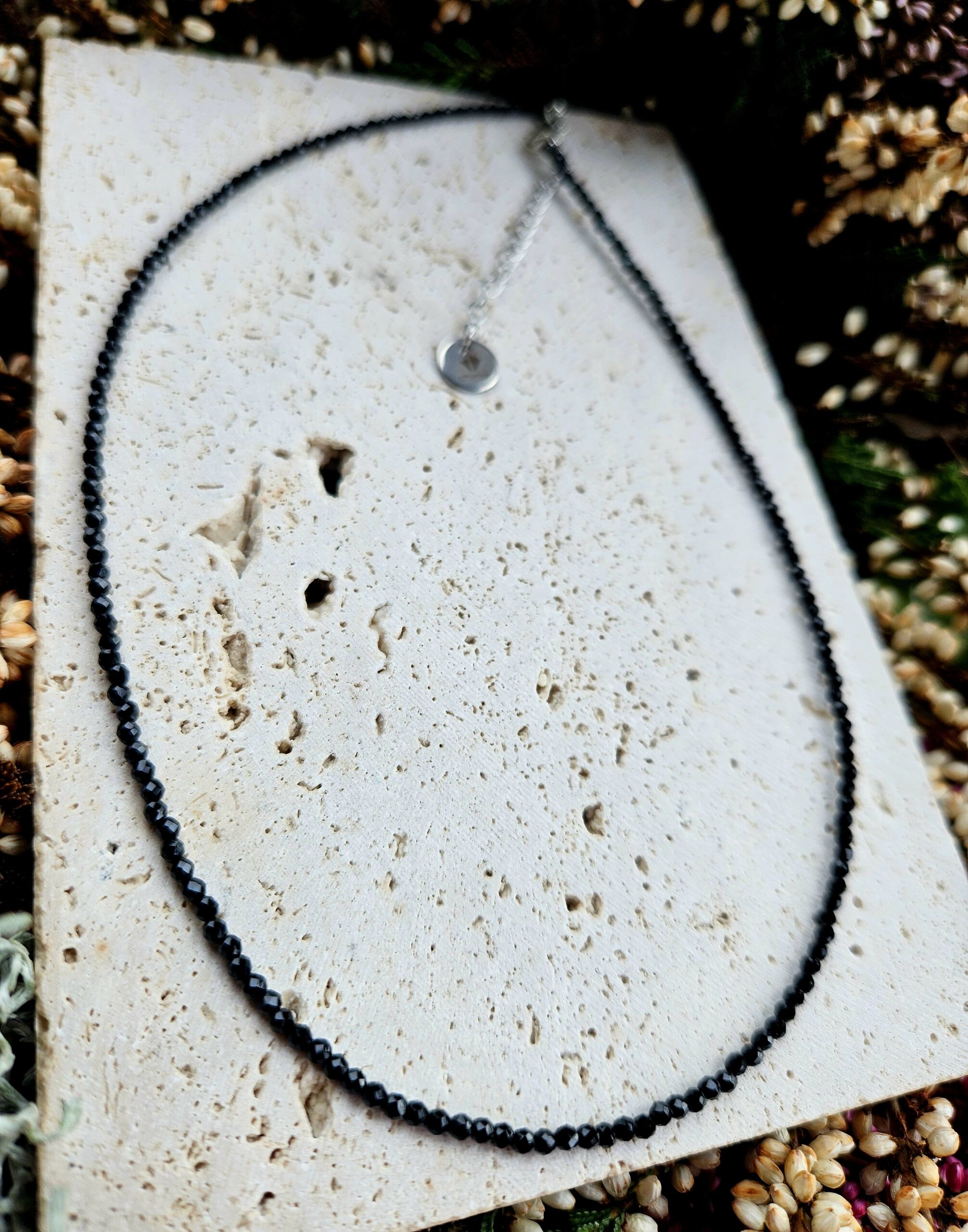 Turmalín čierny náhrdelník 2mm fazetovaný strieborný