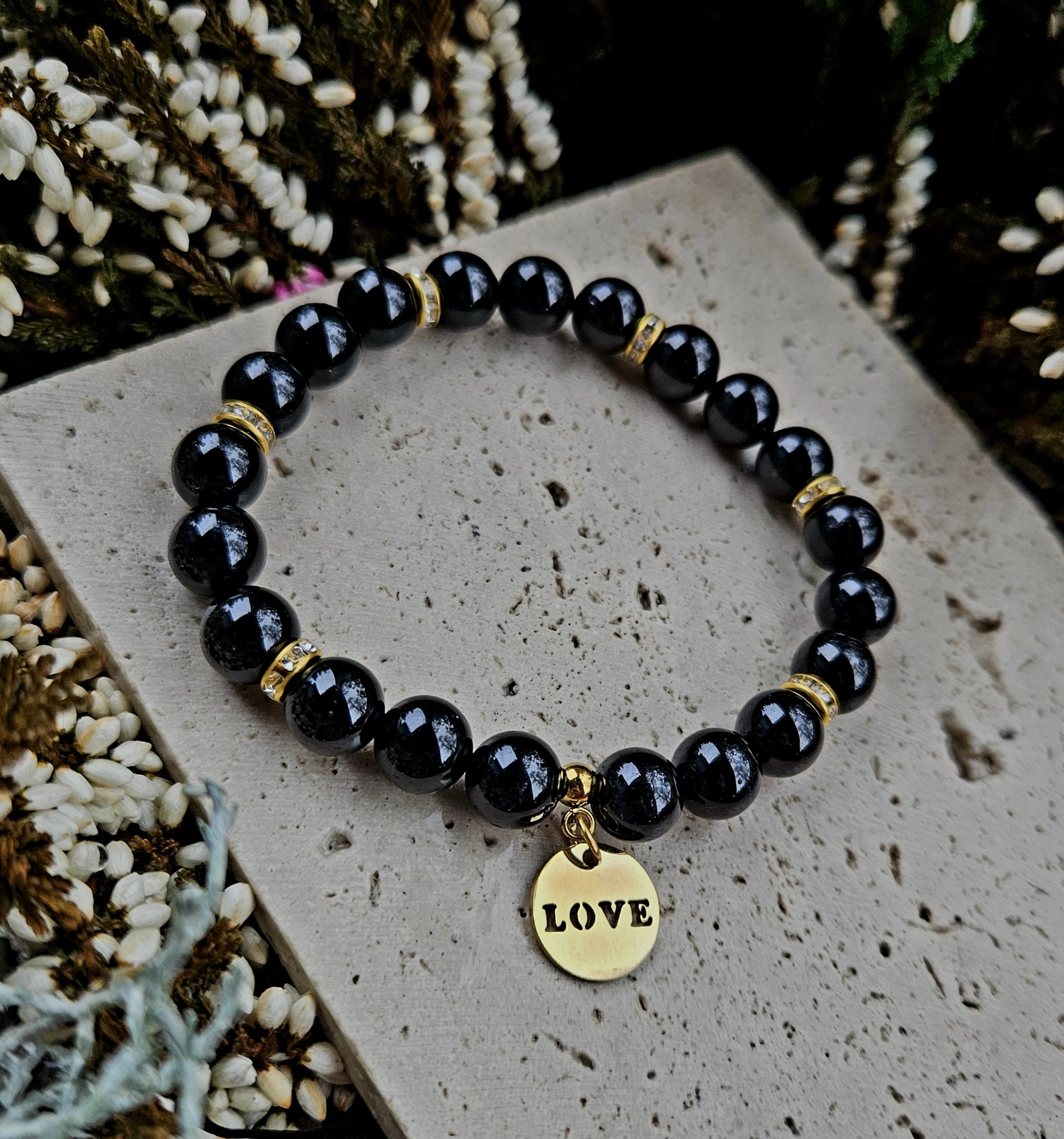 Turmalín čierny náramok 8mm LOVE zlaté