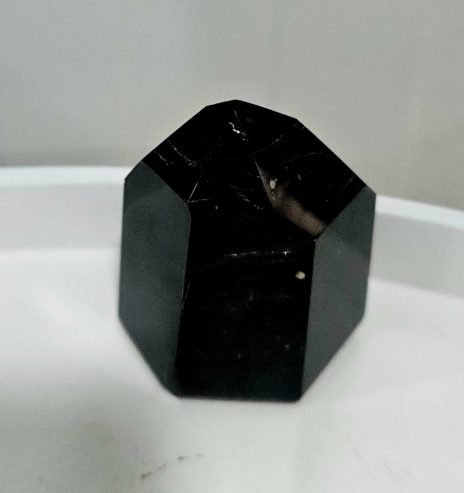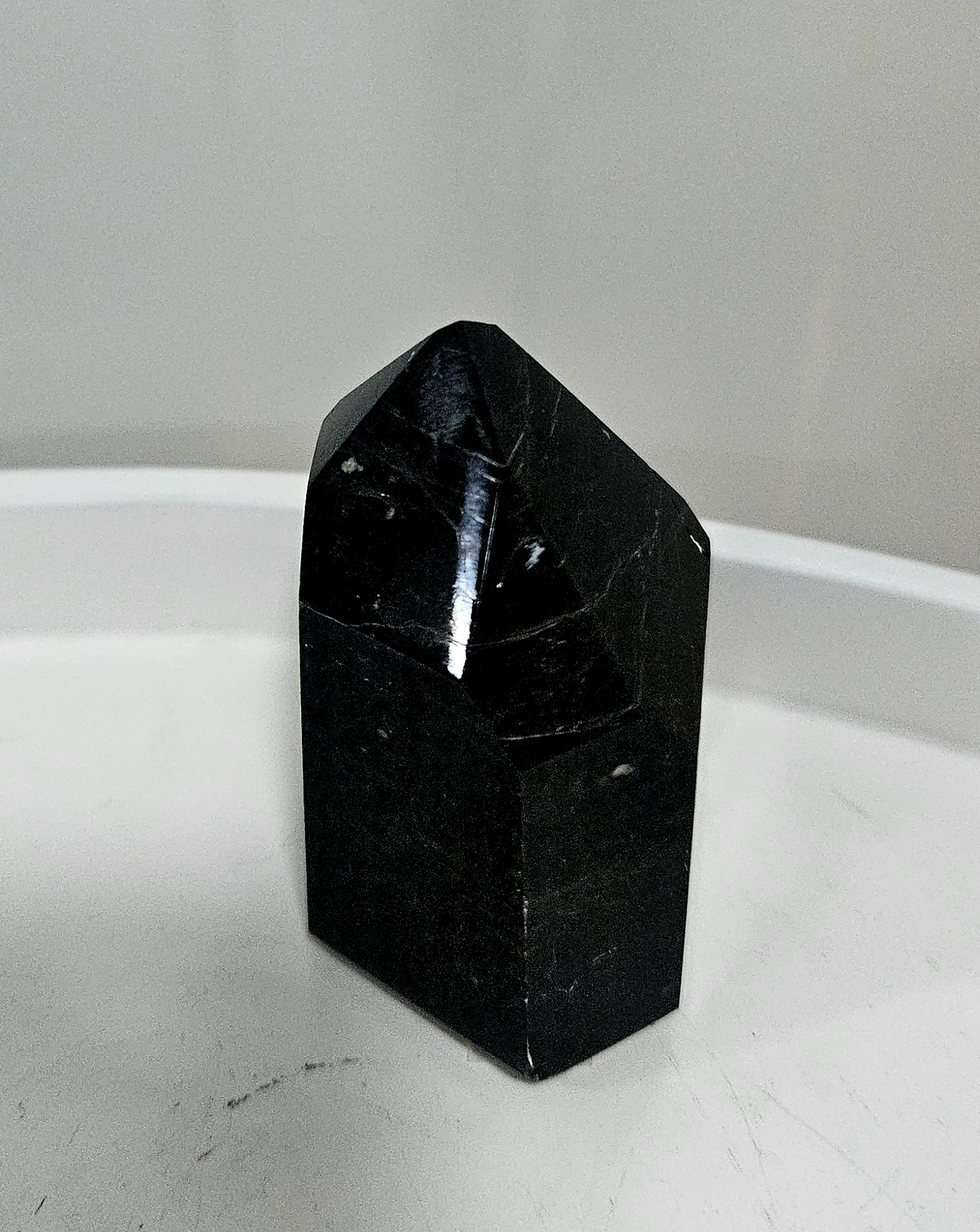 Čierny turmalín je známy ako kameň ochrany a uzemnenia – pomáha pohlcovať negatívnu energiu, vytvára energetický štít a podporuje pocit bezpečia a stability. Obeliskový tvar navyše smeruje energiu nahor, čím harmonizuje priestor a zosilňuje účinok kameňa.