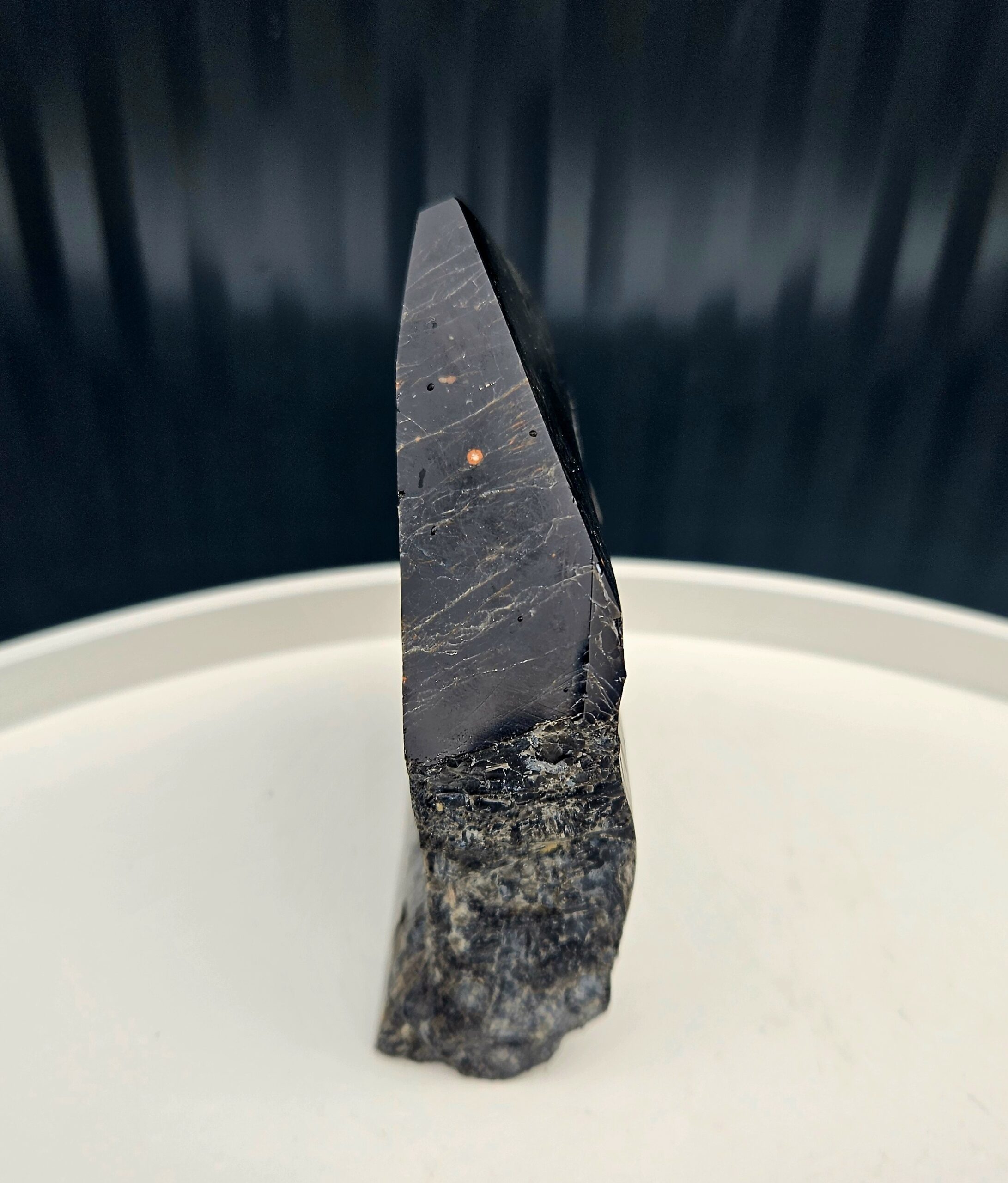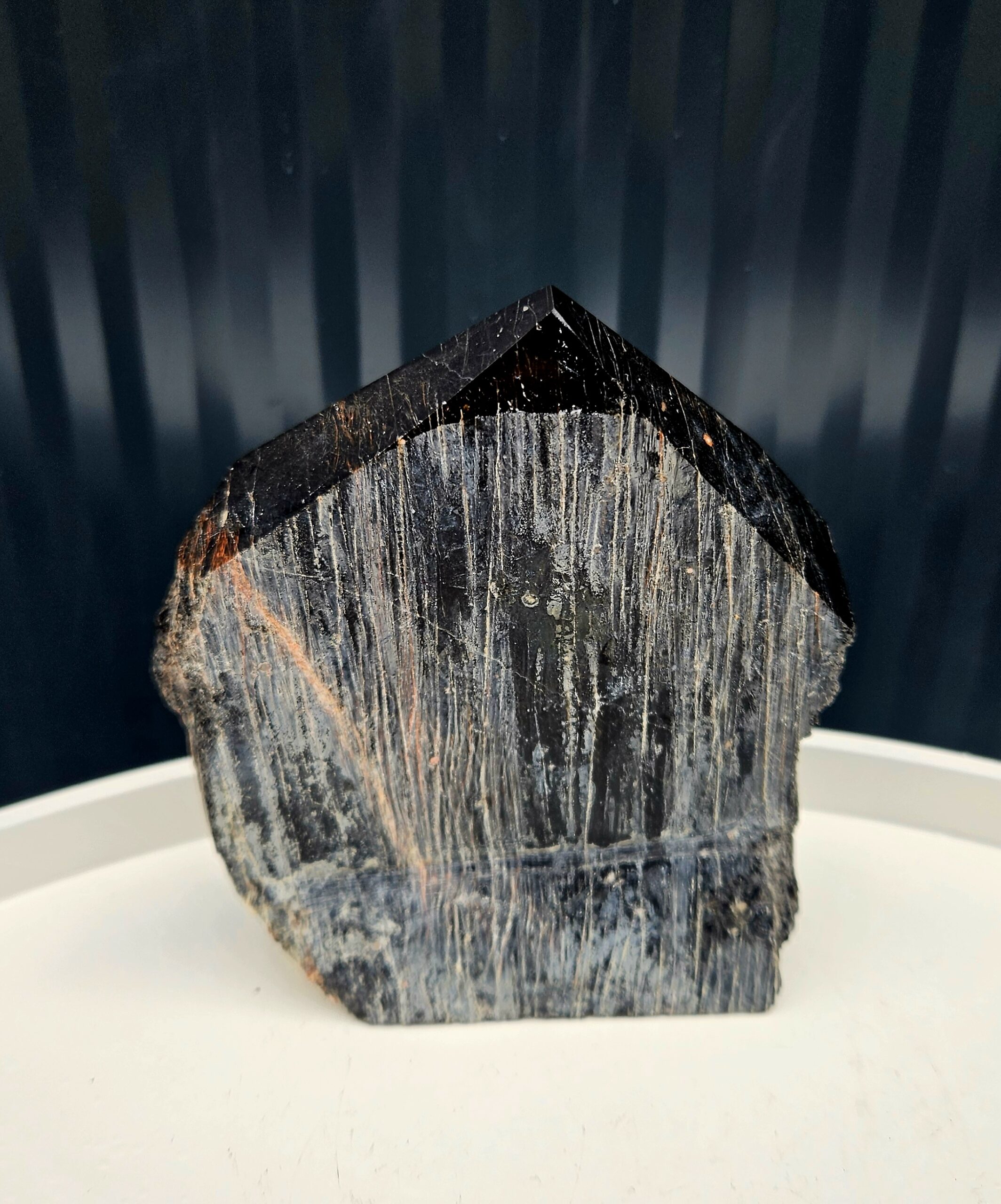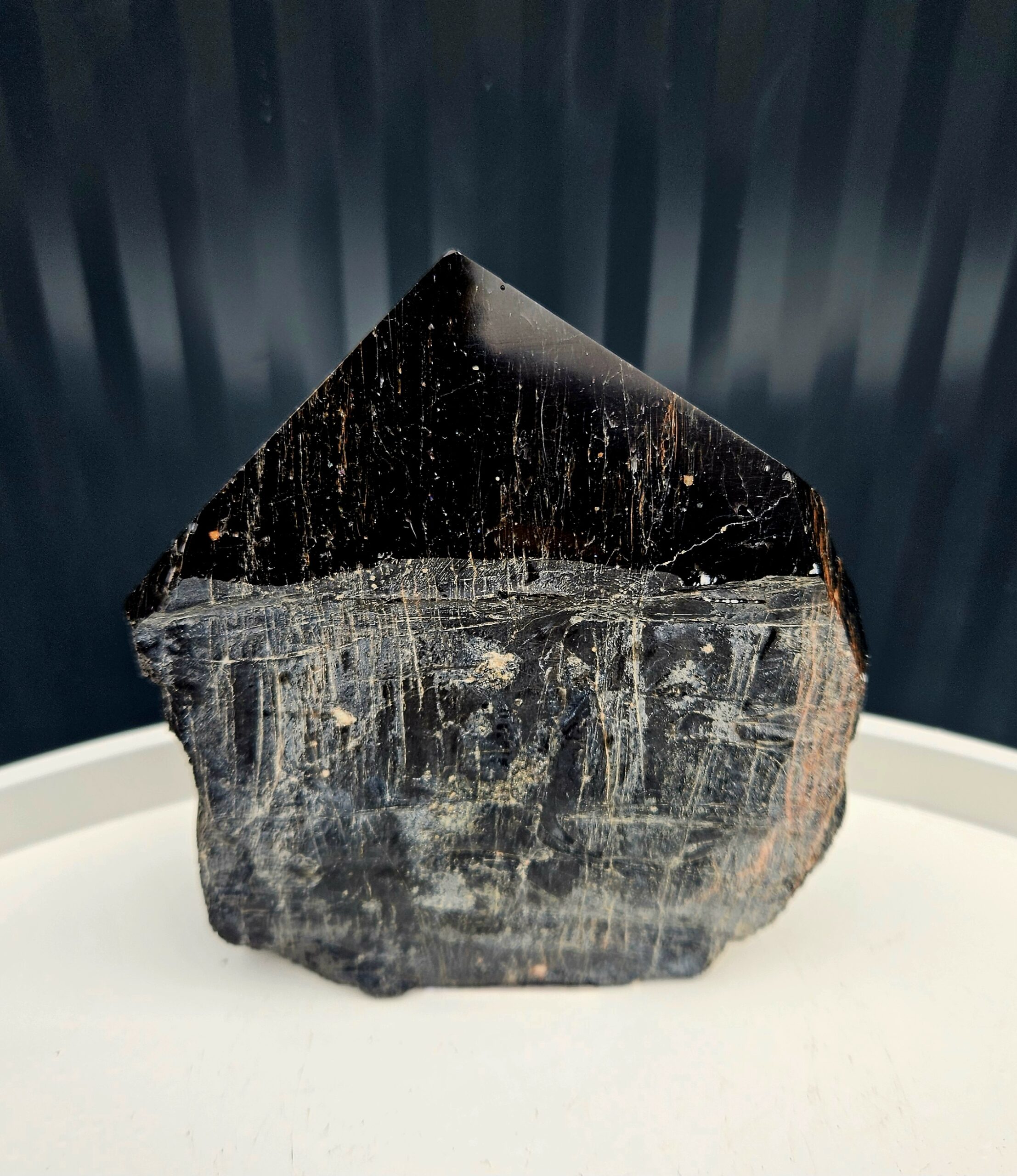 Leštený hrot usmerňuje energiu, zatiaľ čo surová časť ju ukotvuje – skvelý pomocník pri meditácii alebo ako ochranný prvok v priestore.