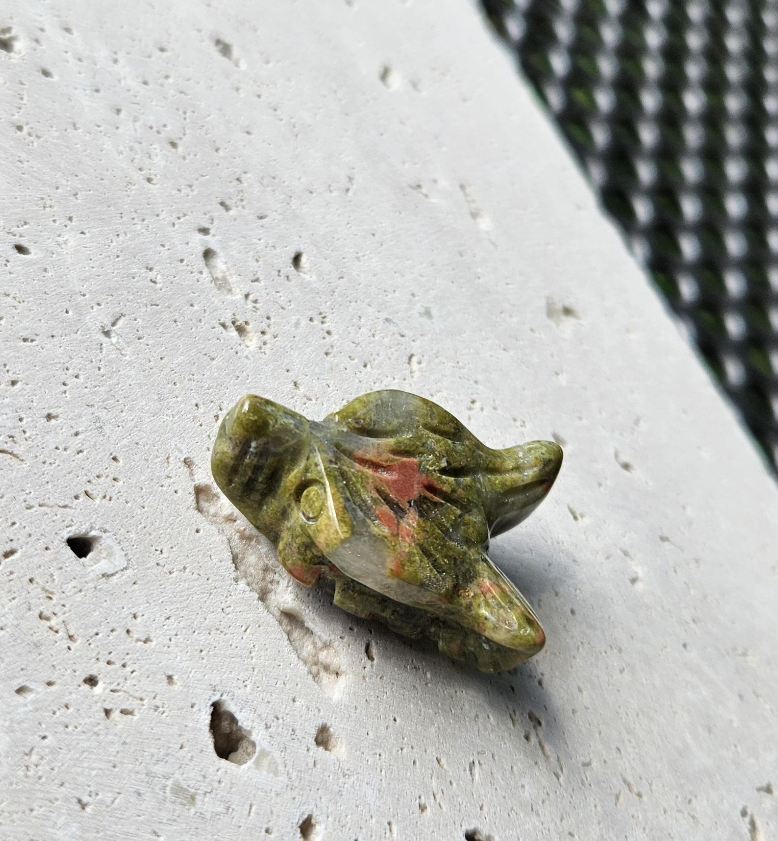 je kameňom veľmi zvláštnej farebnej kombinácie, zelený živec sa v ňom spája s ružovým epidotom, čím vznikajú na kameni rôzne mapy zeleno-ružových škvŕn