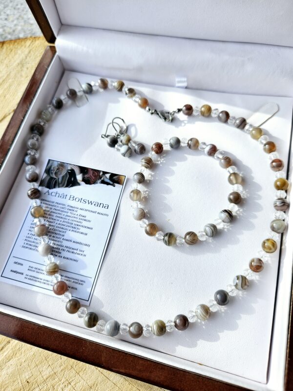 Achát Botswana SET náhrdelník+náramok+náušnice 8mm ZĽAVA