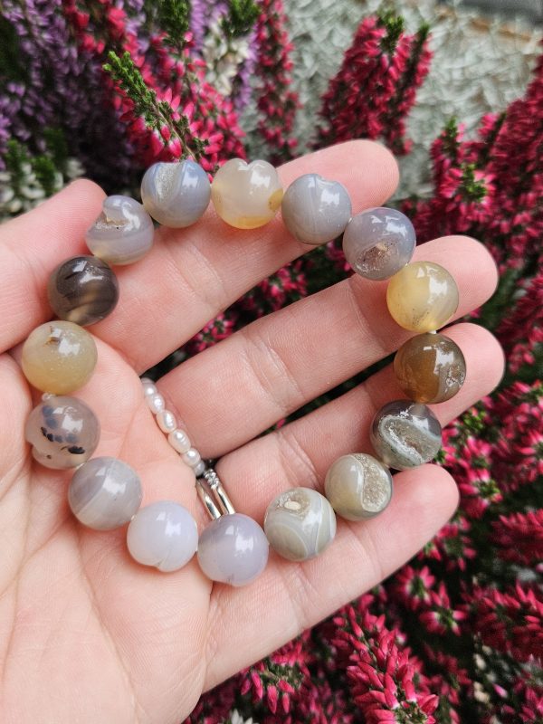 Achát botswana perličkové drúzy náramok 12mm č.1