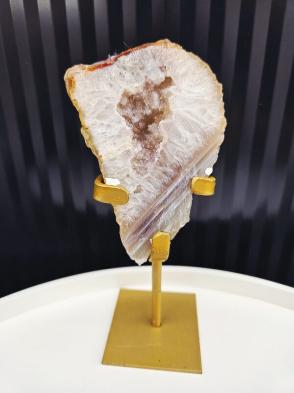 Rozmer geódy: 9,5 × 6,5 cm Achát GEODA na zlatom stojane č.4