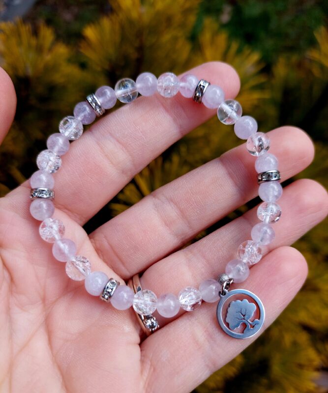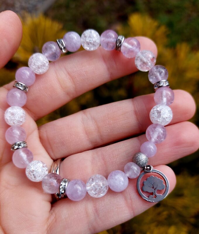 Ametyst levanduľový + Krištáľ náramok 8mm Strom života