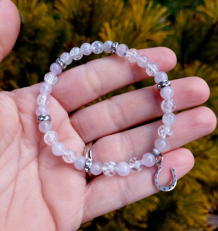 Ametyst levanduľový + Krištáľ náramok 6mm Podkova