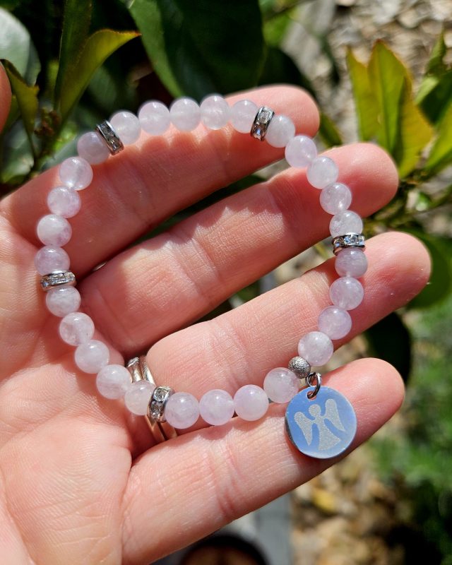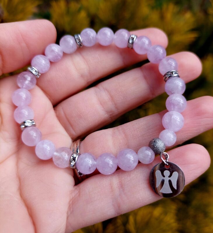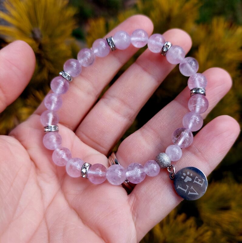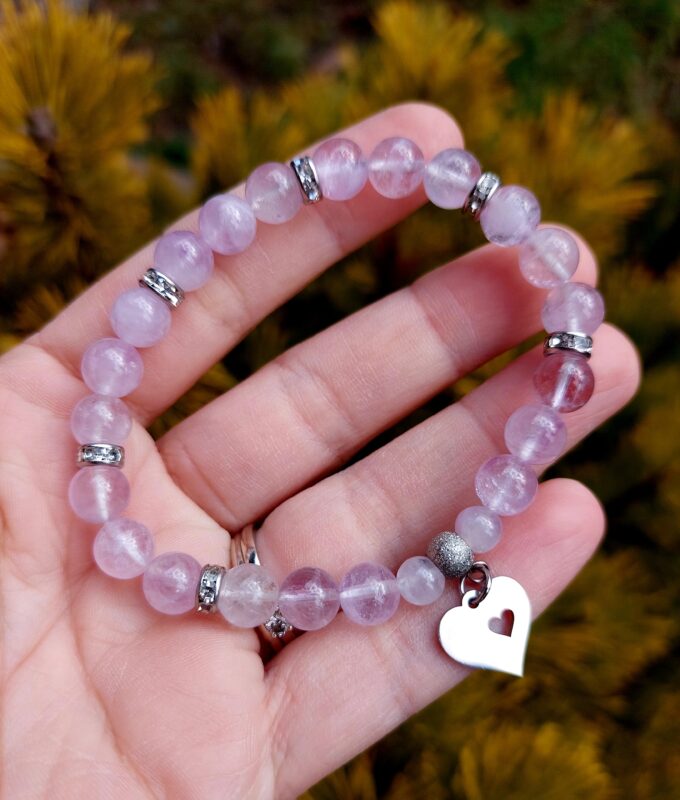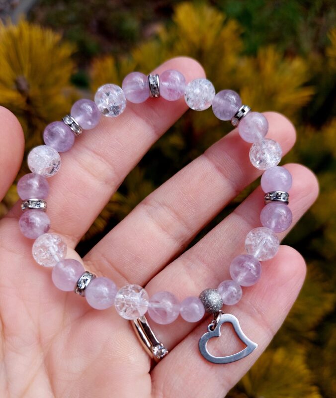 Ametyst levanduľový + Krištáľ náramok 8mm Srdiečko