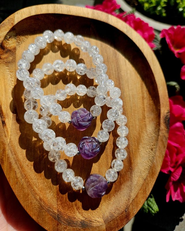 Stojan na guľu dostanete ZDARMA Ametyst KVIETOK + Krištáľ praskaný 8mm náramok