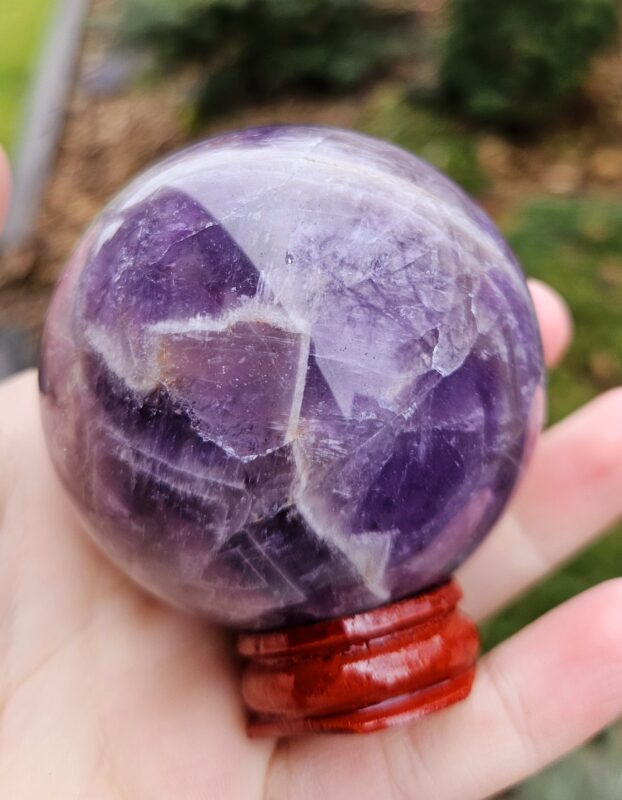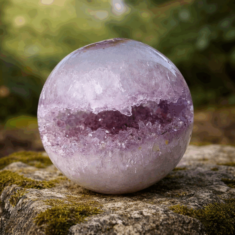 Guľovitý tvar symbolizuje celistvosť, harmóniu a plynutie energie do všetkých smerov. Ametyst v tejto podobe pôsobí ako silný ochranný a upokojujúci talizman, ktorý pomáha stíšiť myseľ, prehĺbiť intuíciu a vytvoriť bezpečný, harmonický priestor.Je ideálnym spoločníkom pri meditácii, relaxácii aj každodennom spočinutí v sebe. Jemne podporuje duchovný rast, vnútornú rovnováhu a prepojenie so svojím vyšším ja.
