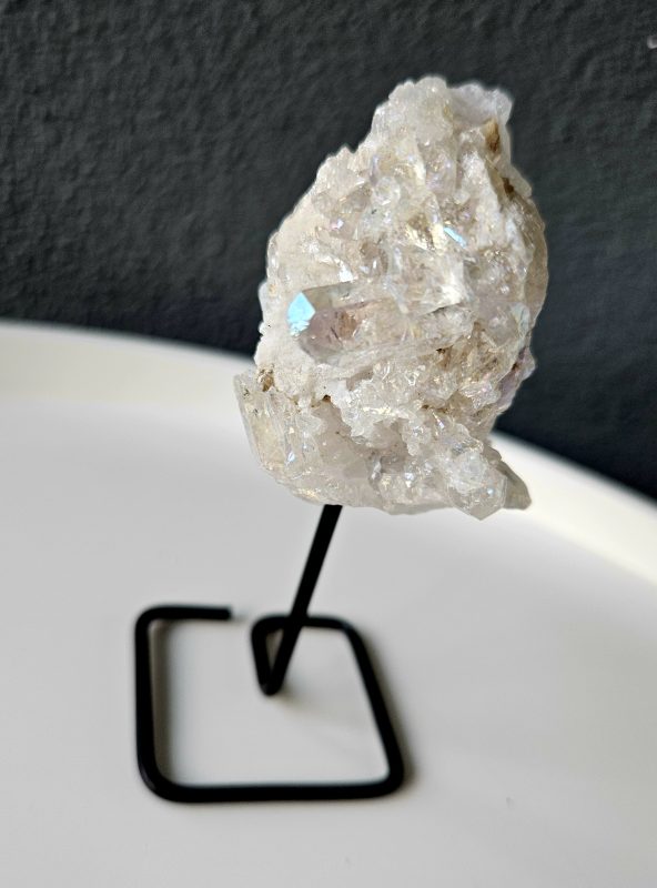 Energia a symbolika: Aqua Aura je považovaná za kameň harmónie, ochrany a vnútornej čistoty. Pomáha upokojiť myseľ, posilniť intuíciu a prináša pocit pokoja a svetla do priestoru. Je ideálna na meditáciu, energetickú prácu alebo ako výrazný dekoratívny kúsok s výnimočnou aurou.