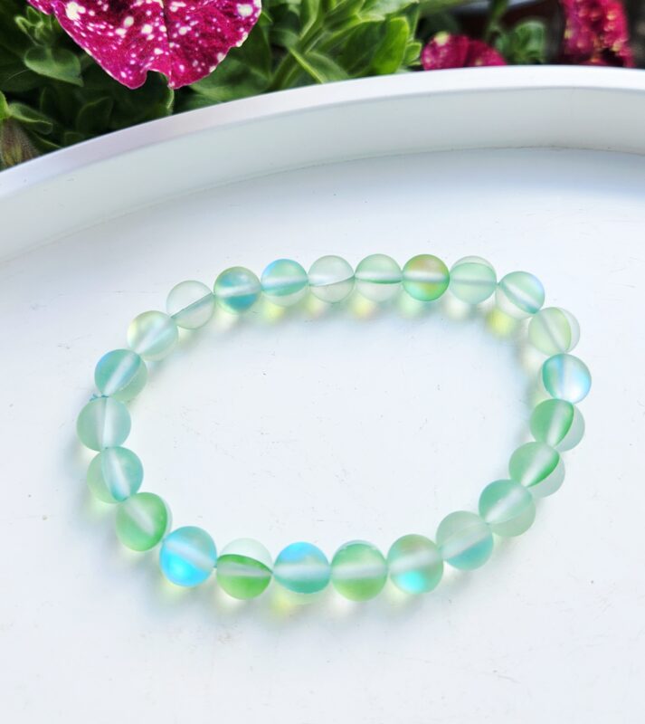 Tento nádherný náramok z aqua aura kameňa v žltých a jemne dúhových odtieňoch pôsobí sviežo, radostne a veľmi pozitívne.