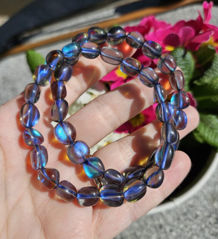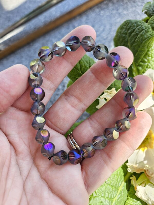 Aqua aura šedo – modrá náramok 8mm