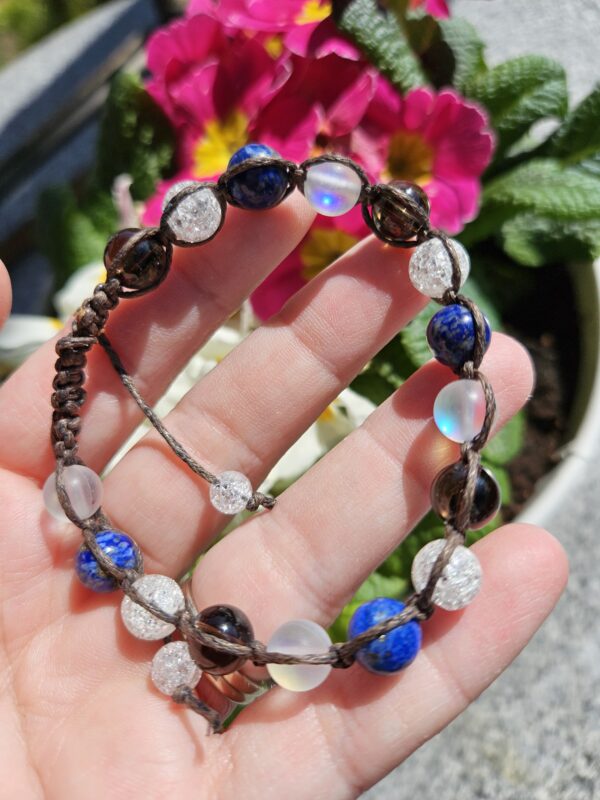 Kupujete konkrétny kus na fotke.Aqua Aura, Záhneda, Lapis lazuli, Krištáľ 8mm zaťahovací náramok