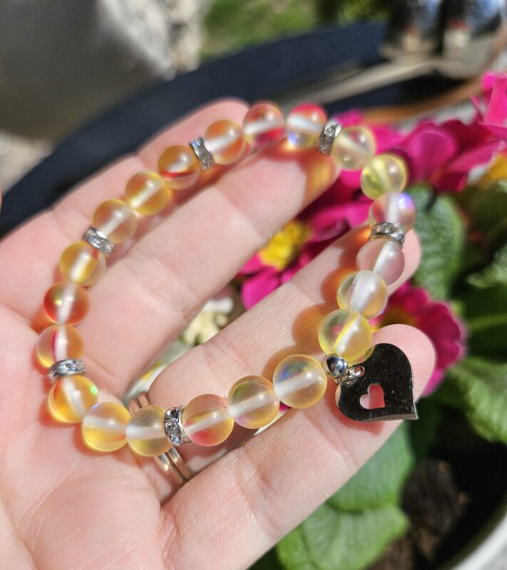 Aqua Aura žltá náramok 8mm Srdiečko