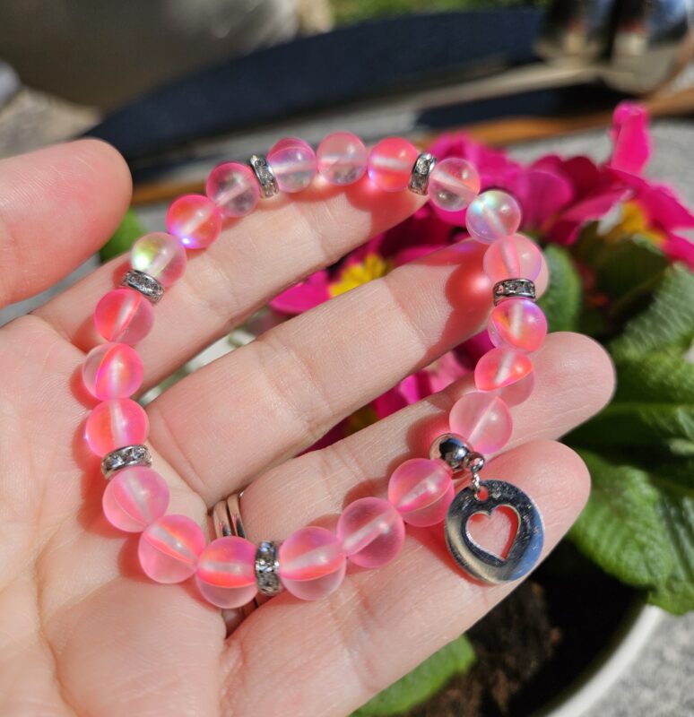 Aqua Aura ružová náramok 8mm Srdiečko