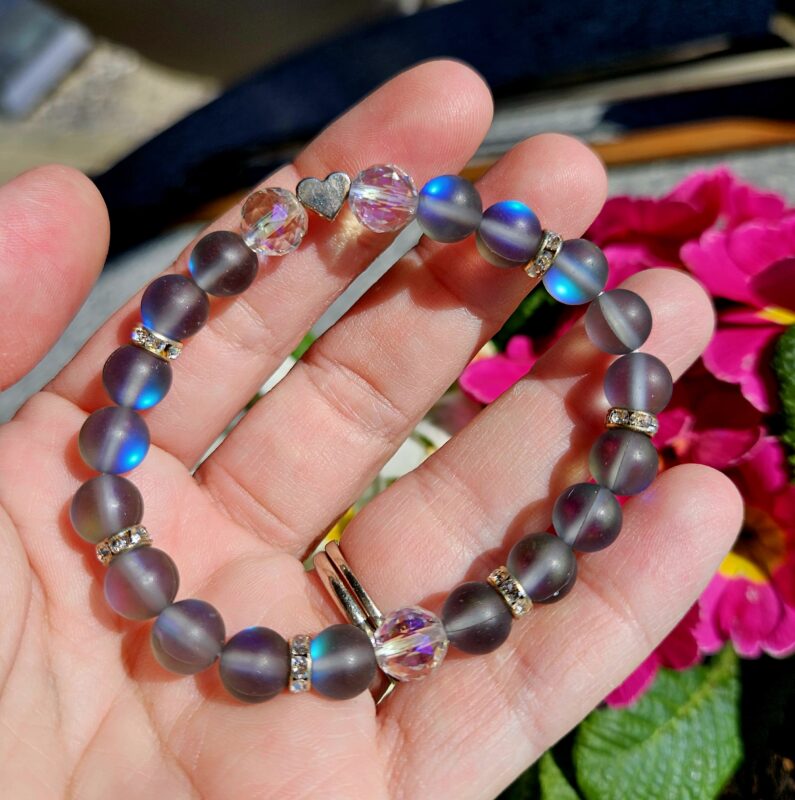 Aqua Aura šedá + Krištáľ náramok 8mm Srdiečko
